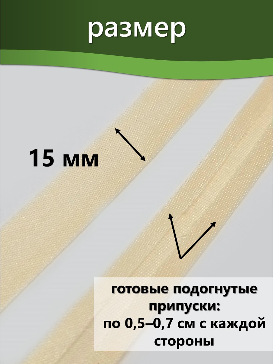 Косая бейка шириной 15 мм используется для обработки краёв текстильных изделий, включая одежду, аксессуары и домашний текстиль. Некоторые области применения: