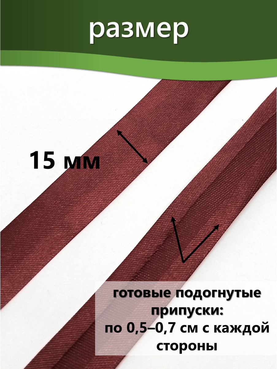 Косая бейка шириной 15 мм используется для обработки краёв текстильных изделий, включая одежду, аксессуары и домашний текстиль. Некоторые области применения: