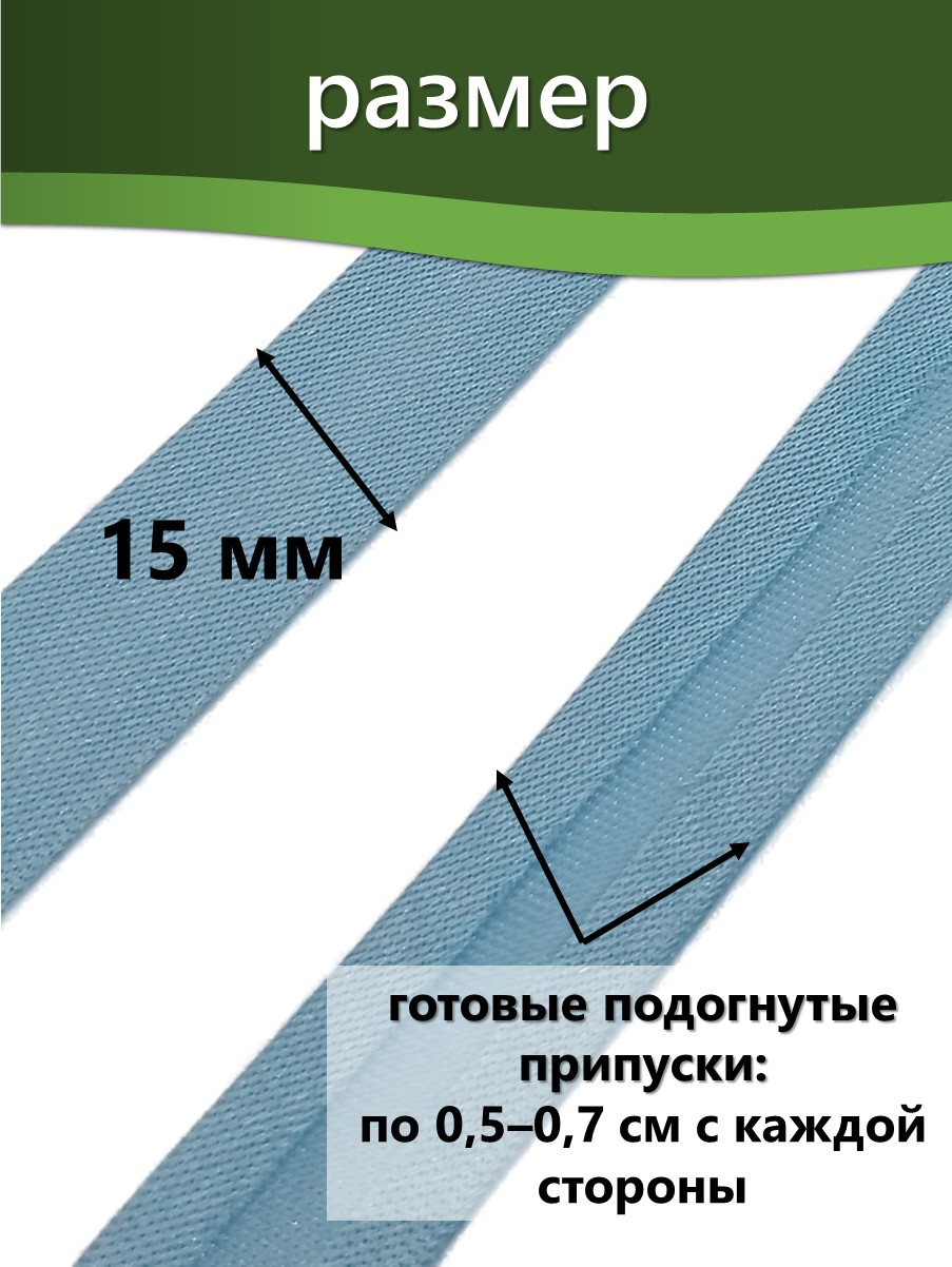 Косая бейка шириной 15 мм используется для обработки краёв текстильных изделий, включая одежду, аксессуары и домашний текстиль. Некоторые области применения: