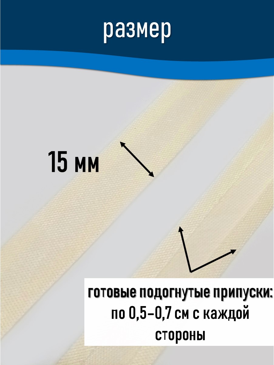 Косая бейка шириной 15 мм используется для обработки краёв текстильных изделий, включая одежду, аксессуары и домашний текстиль. Некоторые области применения: