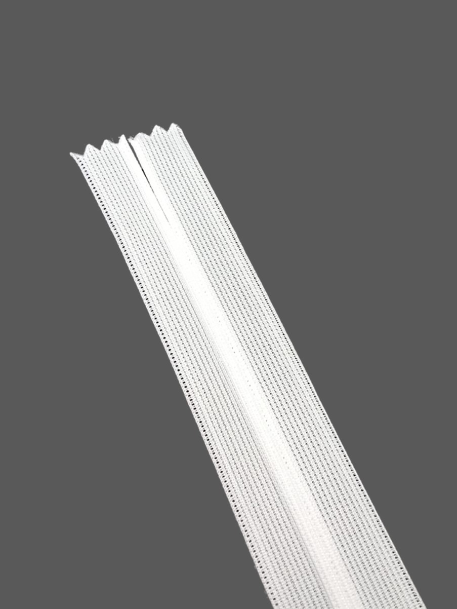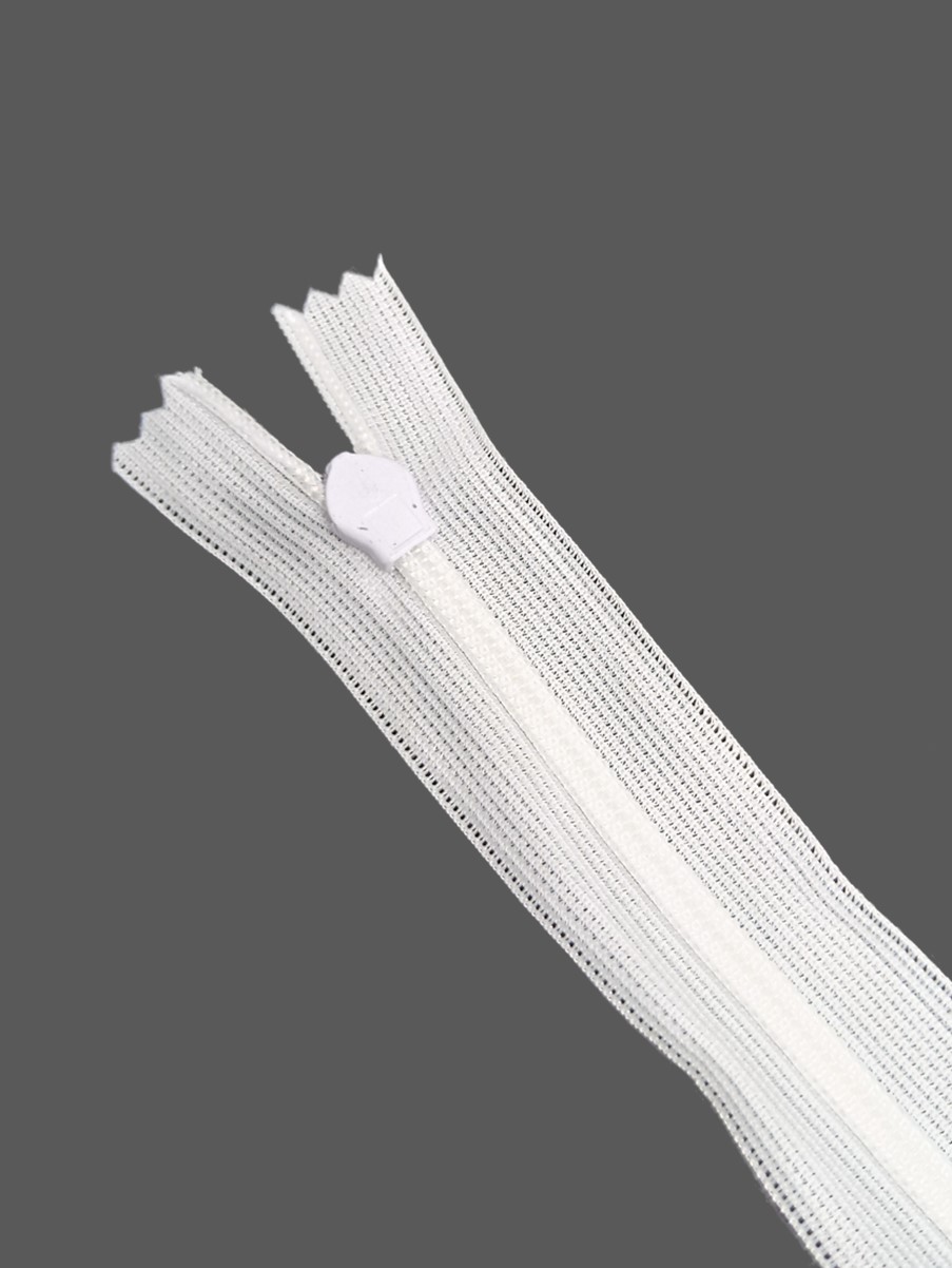 Потайная неразъёмная молния Т3 длиной 20 см (нейлон) имеет особое строение: звенья расположены на изнаночной стороне застёжки и прикрыты текстильной лентой, а с лицевой стороны находится только бегунок. Благодаря этому такая молния на готовом изделии почти незаметна.