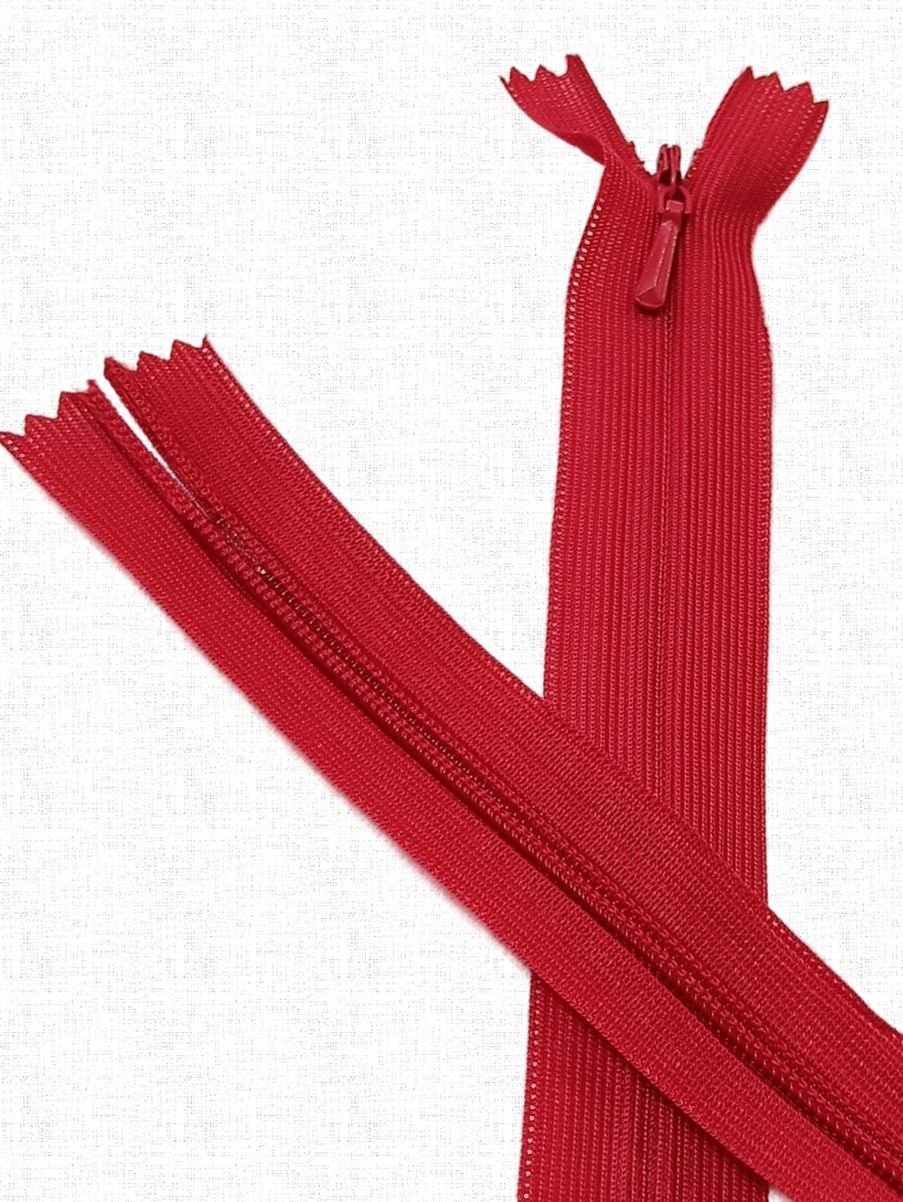 Потайная неразъёмная молния Т3 длиной 50 см (нейлон) имеет особое строение: звенья расположены на изнаночной стороне застёжки и прикрыты текстильной лентой, а с лицевой стороны находится только бегунок. Благодаря этому такая молния на готовом изделии почти незаметна.
