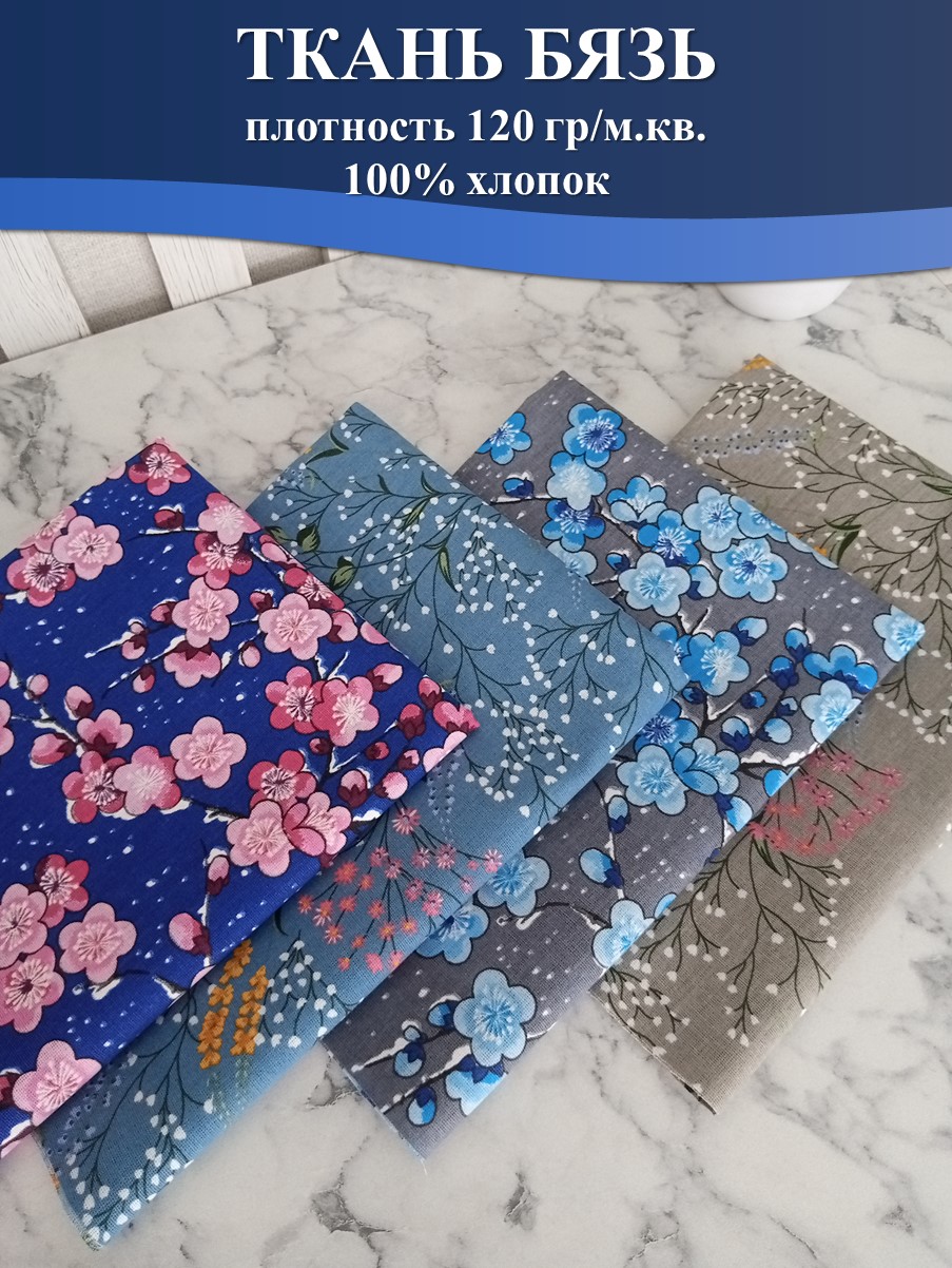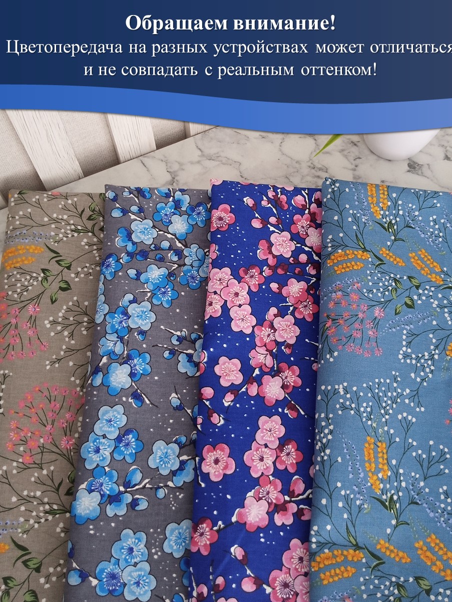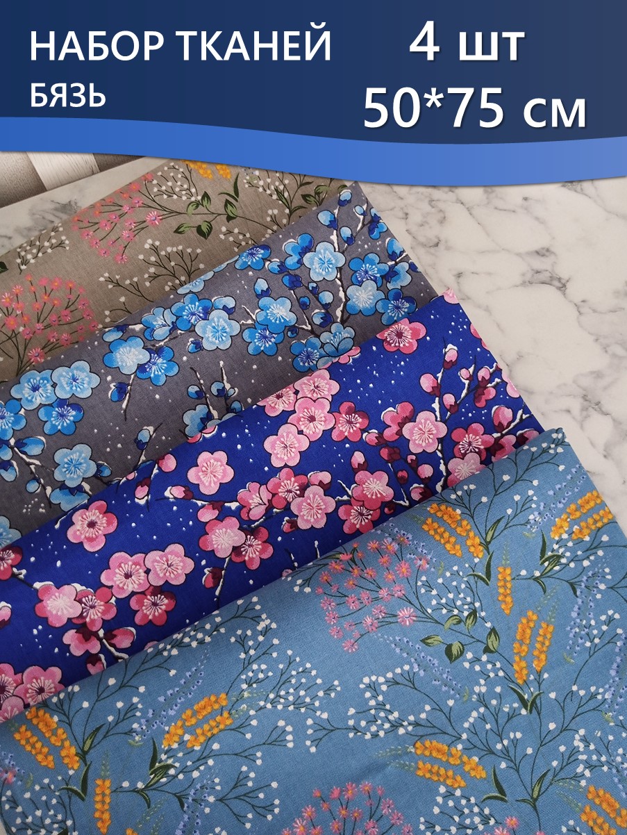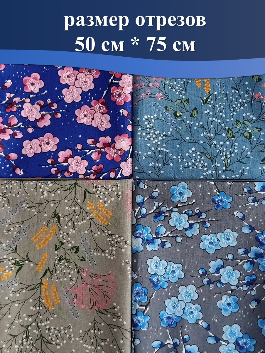 В набор тканей для шитья входит 4 отреза размером 50*75 см.