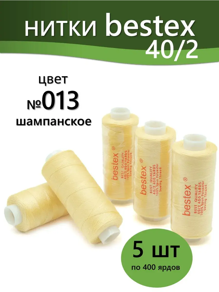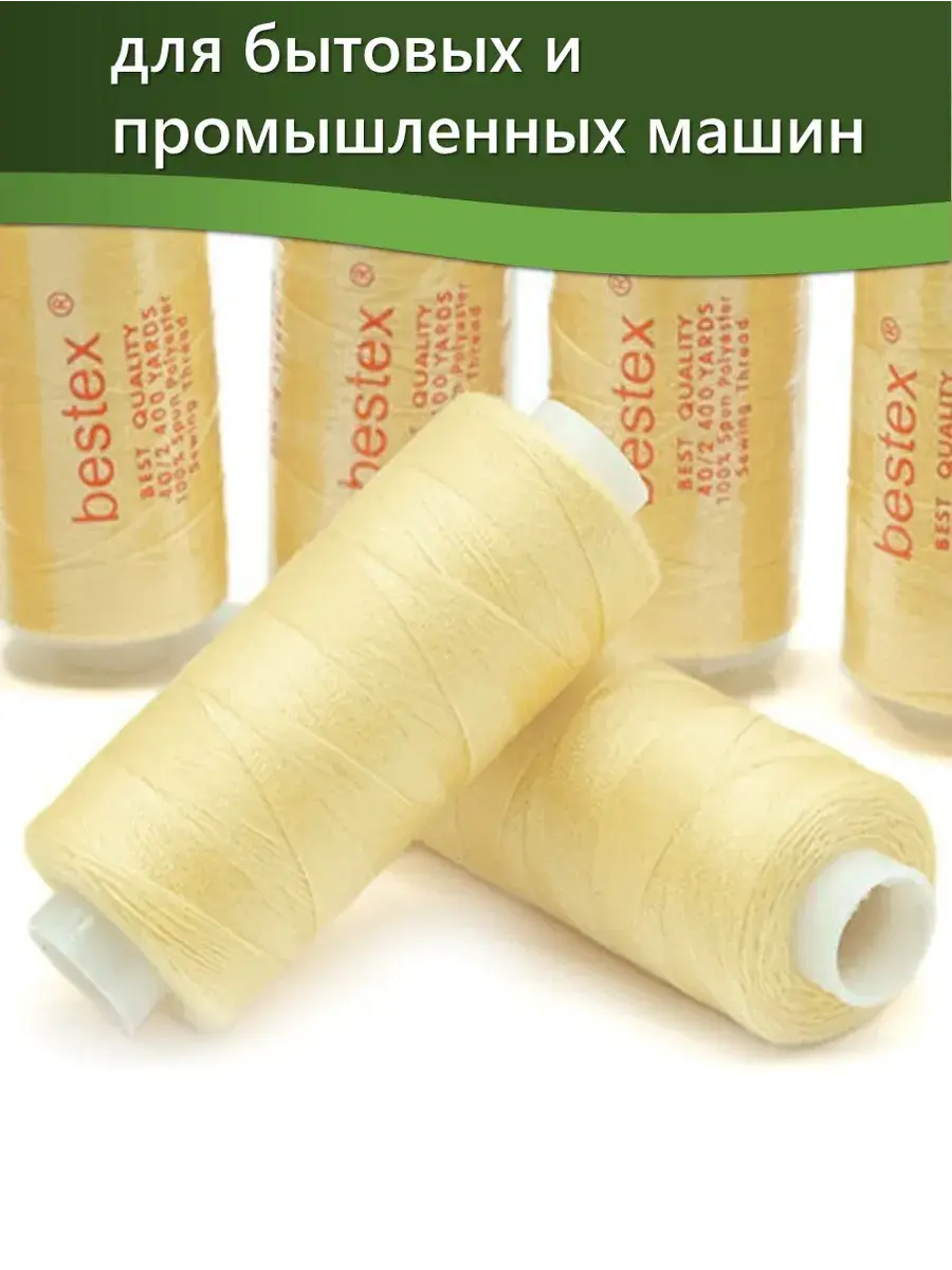 Набор ниток Bestex №40/2 – прекрасный вариант для шитья, ремонта текстильных изделий, рукоделия. Подойдут для бытовых и промышленных швейных машин. Изготовлены из 100 % полиэстера, прочные на разрыв и слегка эластичные, равномерные по толщине, имеют правостороннюю крутку. Обработаны силиконом на 3%, поэтому меньше разрываются при работе на высоких скоростях. Не истончаются и не теряют цвет после многократных стирок и от воздействия ультрафиолетовых лучей. Усадка минимальна, ворс и узелки почти не выражены. Нитки №40/2 подходят для работы с легкими тканями и тканями среднего веса. Назначение: – ремонт текстильных изделий, штопка вещей из трикотажа; – обработка срезов; – шитье вручную и на швейной машине. Линейная плотность: 14,8 x 2 текс. Разрывная нагрузка: 1050 сН. Рекомендуемый размер иглы: №80-90. В упаковке 5 бобин в намотке 400 ярдов.