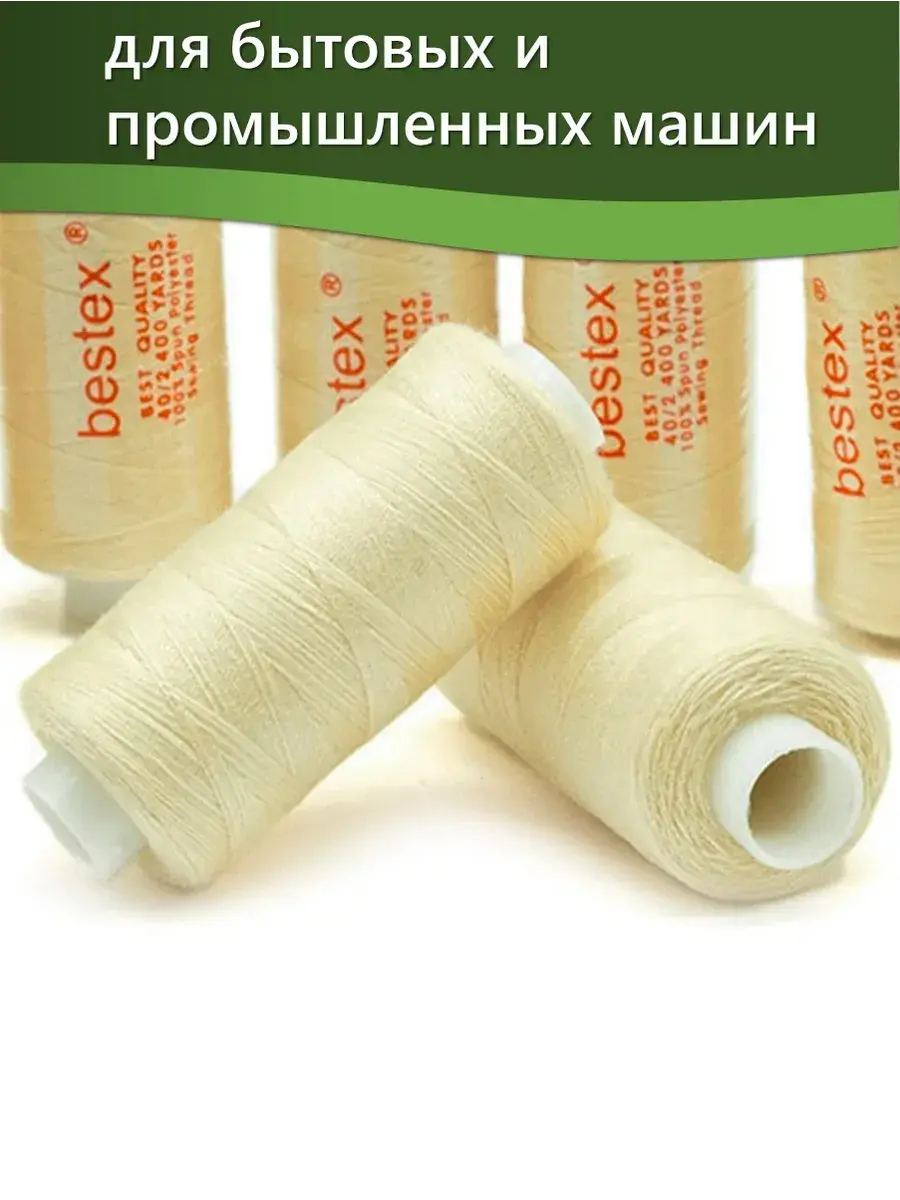 Набор ниток Bestex №40/2 – прекрасный вариант для шитья, ремонта текстильных изделий, рукоделия. Подойдут для бытовых и промышленных швейных машин. Изготовлены из 100 % полиэстера, прочные на разрыв и слегка эластичные, равномерные по толщине, имеют правостороннюю крутку. Обработаны силиконом на 3%, поэтому меньше разрываются при работе на высоких скоростях. Не истончаются и не теряют цвет после многократных стирок и от воздействия ультрафиолетовых лучей. Усадка минимальна, ворс и узелки почти не выражены. Нитки №40/2 подходят для работы с легкими тканями и тканями среднего веса. Назначение: – ремонт текстильных изделий, штопка вещей из трикотажа; – обработка срезов; – шитье вручную и на швейной машине. Линейная плотность: 14,8 x 2 текс. Разрывная нагрузка: 1050 сН. Рекомендуемый размер иглы: №80-90. В упаковке 5 бобин в намотке 400 ярдов.