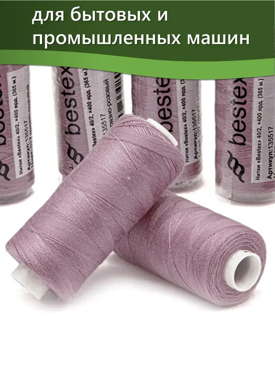 Набор ниток Bestex №40/2 – прекрасный вариант для шитья, ремонта текстильных изделий, рукоделия. Подойдут для бытовых и промышленных швейных машин. Изготовлены из 100 % полиэстера, прочные на разрыв и слегка эластичные, равномерные по толщине, имеют правостороннюю крутку. Обработаны силиконом на 3%, поэтому меньше разрываются при работе на высоких скоростях. Не истончаются и не теряют цвет после многократных стирок и от воздействия ультрафиолетовых лучей. Усадка минимальна, ворс и узелки почти не выражены. Нитки №40/2 подходят для работы с легкими тканями и тканями среднего веса. Назначение: – ремонт текстильных изделий, штопка вещей из трикотажа; – обработка срезов; – шитье вручную и на швейной машине. Линейная плотность: 14,8 x 2 текс. Разрывная нагрузка: 1050 сН. Рекомендуемый размер иглы: №80-90. В упаковке 5 бобин в намотке 400 ярдов.