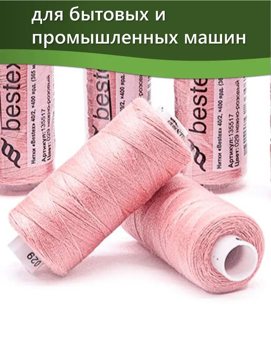 Набор ниток Bestex №40/2 – прекрасный вариант для шитья, ремонта текстильных изделий, рукоделия. Подойдут для бытовых и промышленных швейных машин. Изготовлены из 100 % полиэстера, прочные на разрыв и слегка эластичные, равномерные по толщине, имеют правостороннюю крутку. Обработаны силиконом на 3%, поэтому меньше разрываются при работе на высоких скоростях. Не истончаются и не теряют цвет после многократных стирок и от воздействия ультрафиолетовых лучей. Усадка минимальна, ворс и узелки почти не выражены. Нитки №40/2 подходят для работы с легкими тканями и тканями среднего веса. Назначение: – ремонт текстильных изделий, штопка вещей из трикотажа; – обработка срезов; – шитье вручную и на швейной машине. Линейная плотность: 14,8 x 2 текс. Разрывная нагрузка: 1050 сН. Рекомендуемый размер иглы: №80-90. В упаковке 5 бобин в намотке 400 ярдов.