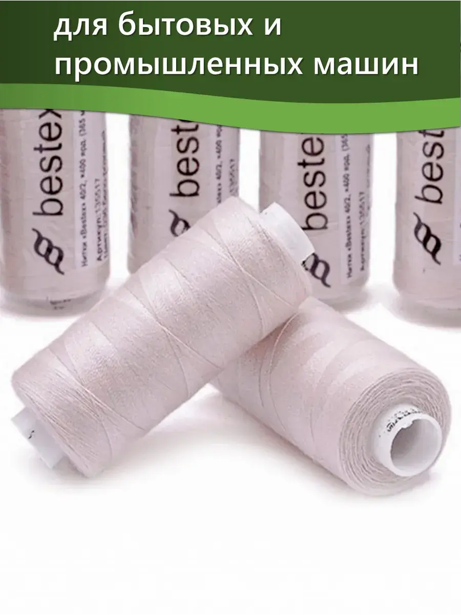 Набор ниток Bestex №40/2 – прекрасный вариант для шитья, ремонта текстильных изделий, рукоделия. Подойдут для бытовых и промышленных швейных машин. Изготовлены из 100 % полиэстера, прочные на разрыв и слегка эластичные, равномерные по толщине, имеют правостороннюю крутку. Обработаны силиконом на 3%, поэтому меньше разрываются при работе на высоких скоростях. Не истончаются и не теряют цвет после многократных стирок и от воздействия ультрафиолетовых лучей. Усадка минимальна, ворс и узелки почти не выражены. Нитки №40/2 подходят для работы с легкими тканями и тканями среднего веса. Назначение: – ремонт текстильных изделий, штопка вещей из трикотажа; – обработка срезов; – шитье вручную и на швейной машине. Линейная плотность: 14,8 x 2 текс. Разрывная нагрузка: 1050 сН. Рекомендуемый размер иглы: №80-90. В упаковке 5 бобин в намотке 400 ярдов.