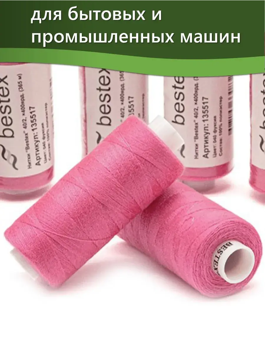 Набор ниток Bestex №40/2 – прекрасный вариант для шитья, ремонта текстильных изделий, рукоделия. Подойдут для бытовых и промышленных швейных машин. Изготовлены из 100 % полиэстера, прочные на разрыв и слегка эластичные, равномерные по толщине, имеют правостороннюю крутку. Обработаны силиконом на 3%, поэтому меньше разрываются при работе на высоких скоростях. Не истончаются и не теряют цвет после многократных стирок и от воздействия ультрафиолетовых лучей. Усадка минимальна, ворс и узелки почти не выражены. Нитки №40/2 подходят для работы с легкими тканями и тканями среднего веса. Назначение: – ремонт текстильных изделий, штопка вещей из трикотажа; – обработка срезов; – шитье вручную и на швейной машине. Линейная плотность: 14,8 x 2 текс. Разрывная нагрузка: 1050 сН. Рекомендуемый размер иглы: №80-90. В упаковке 5 бобин в намотке 400 ярдов.