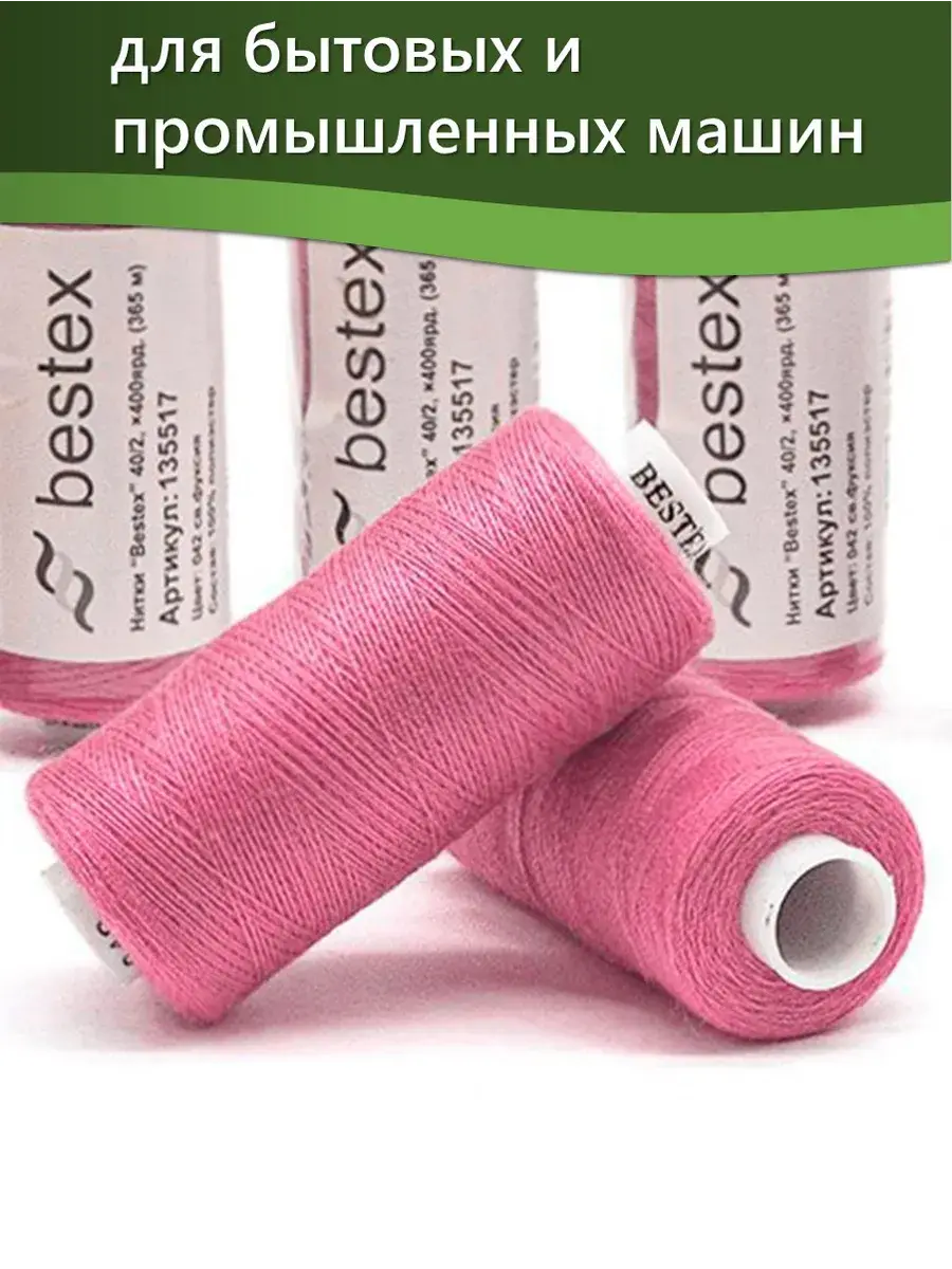 Набор ниток Bestex №40/2 – прекрасный вариант для шитья, ремонта текстильных изделий, рукоделия. Подойдут для бытовых и промышленных швейных машин. Изготовлены из 100 % полиэстера, прочные на разрыв и слегка эластичные, равномерные по толщине, имеют правостороннюю крутку. Обработаны силиконом на 3%, поэтому меньше разрываются при работе на высоких скоростях. Не истончаются и не теряют цвет после многократных стирок и от воздействия ультрафиолетовых лучей. Усадка минимальна, ворс и узелки почти не выражены. Нитки №40/2 подходят для работы с легкими тканями и тканями среднего веса. Назначение: – ремонт текстильных изделий, штопка вещей из трикотажа; – обработка срезов; – шитье вручную и на швейной машине. Линейная плотность: 14,8 x 2 текс. Разрывная нагрузка: 1050 сН. Рекомендуемый размер иглы: №80-90. В упаковке 5 бобин в намотке 400 ярдов.