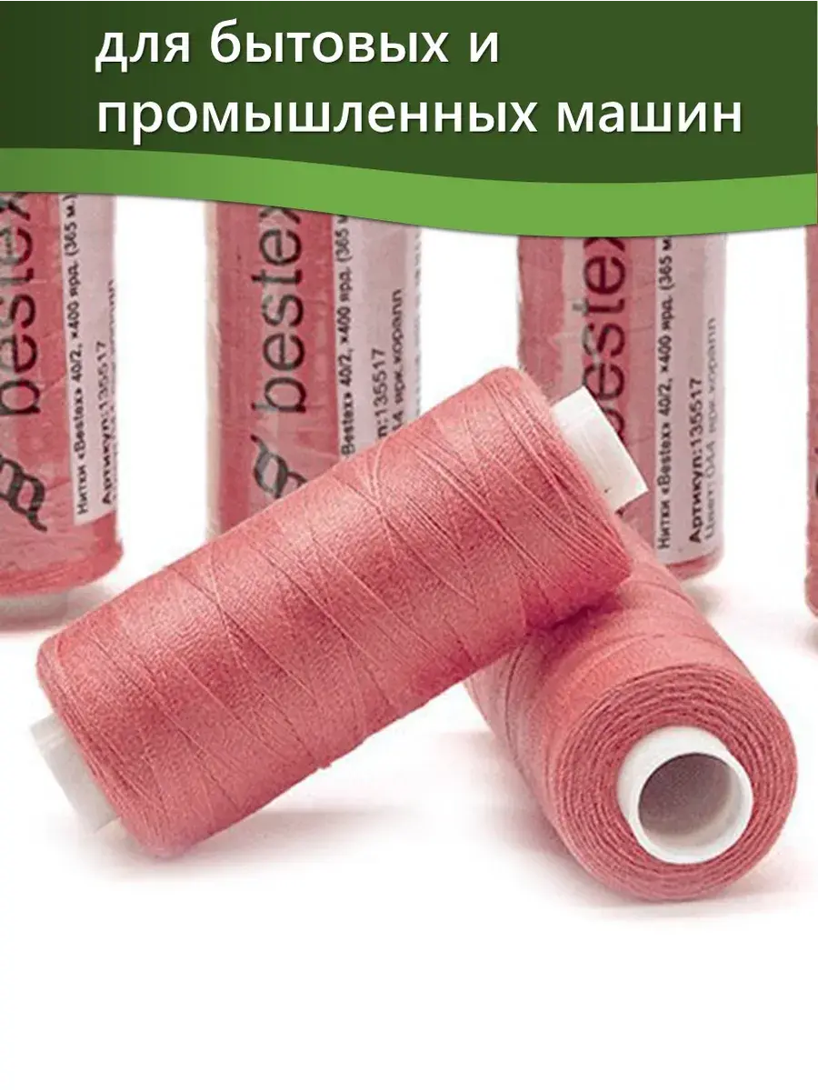 Набор ниток Bestex №40/2 – прекрасный вариант для шитья, ремонта текстильных изделий, рукоделия. Подойдут для бытовых и промышленных швейных машин. Изготовлены из 100 % полиэстера, прочные на разрыв и слегка эластичные, равномерные по толщине, имеют правостороннюю крутку. Обработаны силиконом на 3%, поэтому меньше разрываются при работе на высоких скоростях. Не истончаются и не теряют цвет после многократных стирок и от воздействия ультрафиолетовых лучей. Усадка минимальна, ворс и узелки почти не выражены. Нитки №40/2 подходят для работы с легкими тканями и тканями среднего веса. Назначение: – ремонт текстильных изделий, штопка вещей из трикотажа; – обработка срезов; – шитье вручную и на швейной машине. Линейная плотность: 14,8 x 2 текс. Разрывная нагрузка: 1050 сН. Рекомендуемый размер иглы: №80-90. В упаковке 5 бобин в намотке 400 ярдов.