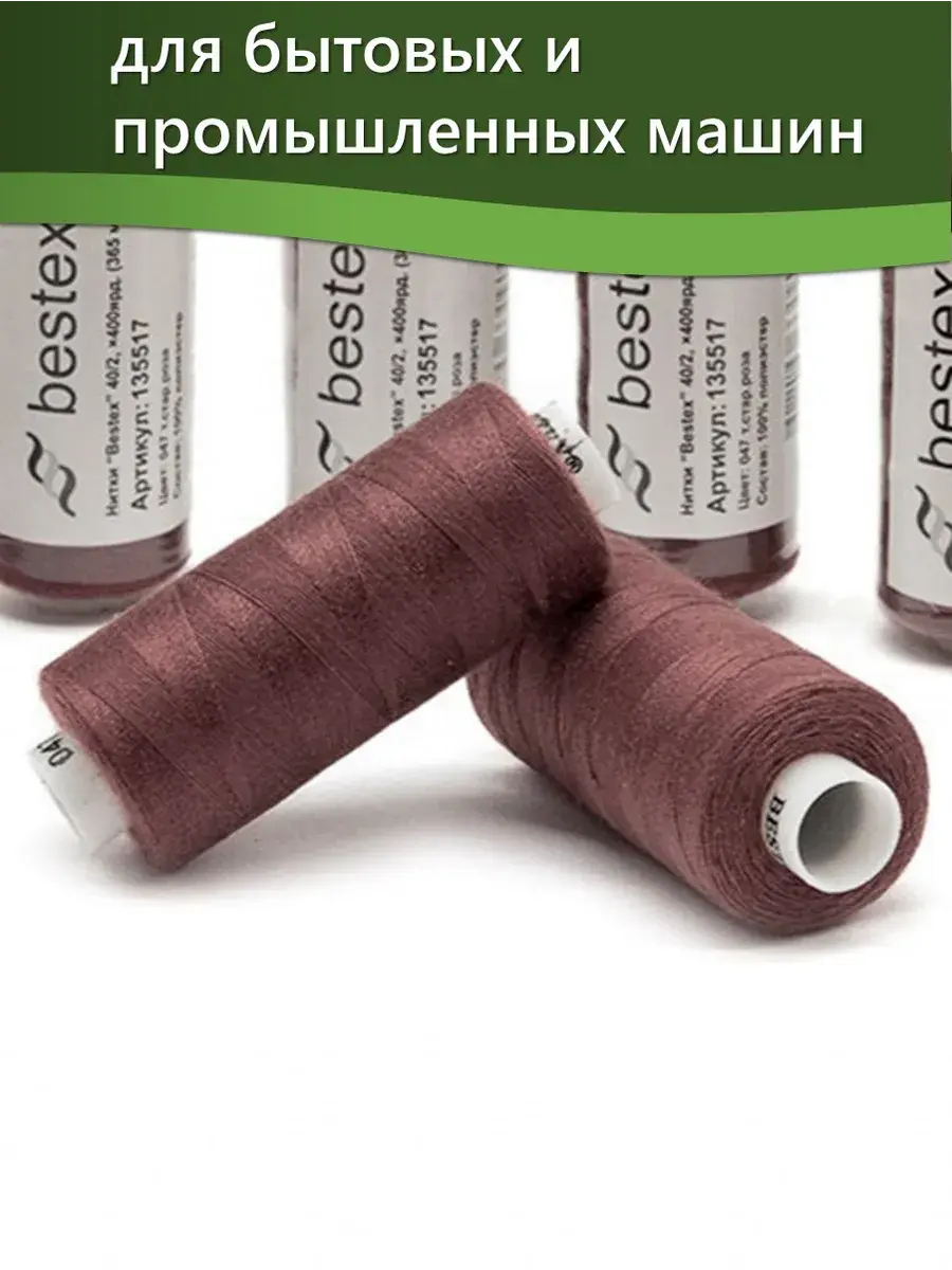 Набор ниток Bestex №40/2 – прекрасный вариант для шитья, ремонта текстильных изделий, рукоделия. Подойдут для бытовых и промышленных швейных машин. Изготовлены из 100 % полиэстера, прочные на разрыв и слегка эластичные, равномерные по толщине, имеют правостороннюю крутку. Обработаны силиконом на 3%, поэтому меньше разрываются при работе на высоких скоростях. Не истончаются и не теряют цвет после многократных стирок и от воздействия ультрафиолетовых лучей. Усадка минимальна, ворс и узелки почти не выражены. Нитки №40/2 подходят для работы с легкими тканями и тканями среднего веса. Назначение: – ремонт текстильных изделий, штопка вещей из трикотажа; – обработка срезов; – шитье вручную и на швейной машине. Линейная плотность: 14,8 x 2 текс. Разрывная нагрузка: 1050 сН. Рекомендуемый размер иглы: №80-90. В упаковке 5 бобин в намотке 400 ярдов.