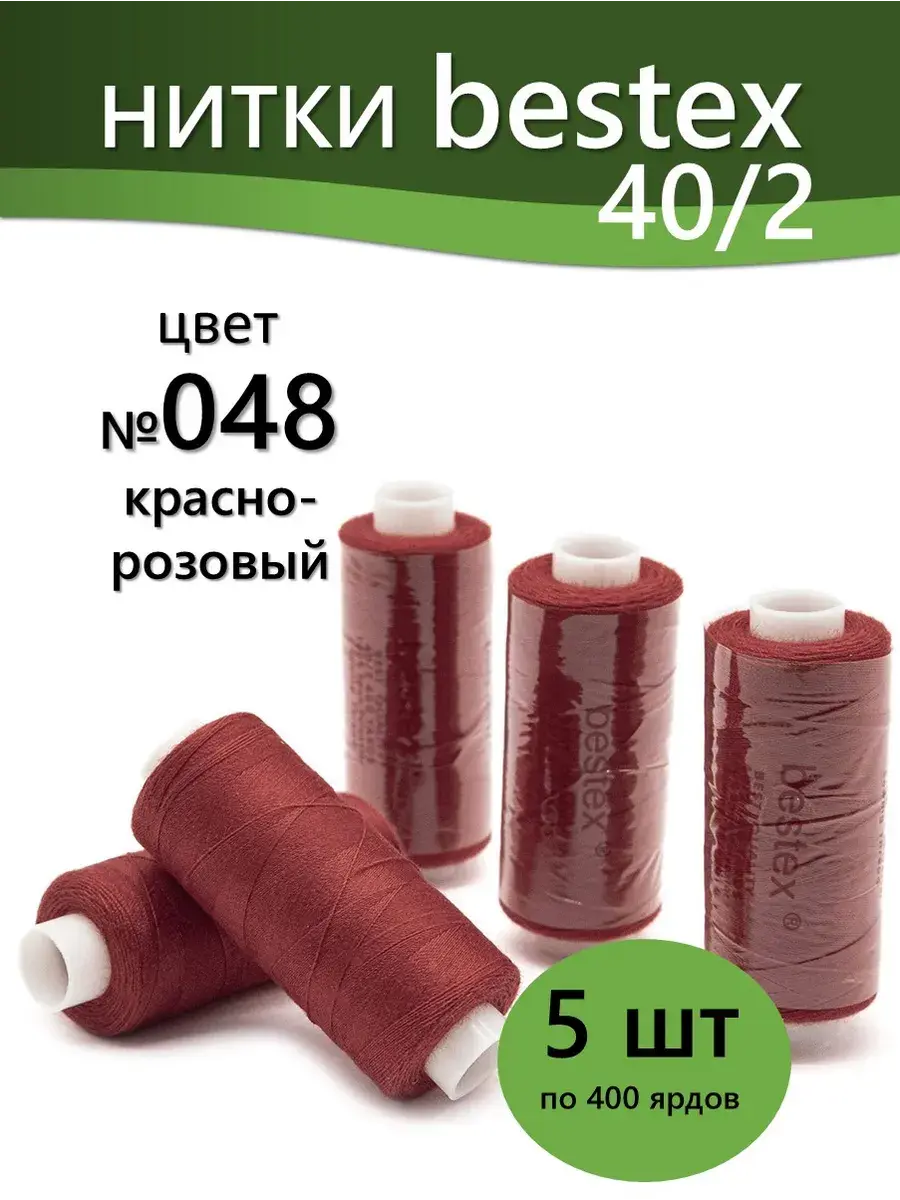 Набор ниток Bestex №40/2 – прекрасный вариант для шитья, ремонта текстильных изделий, рукоделия. Подойдут для бытовых и промышленных швейных машин. Изготовлены из 100 % полиэстера, прочные на разрыв и слегка эластичные, равномерные по толщине, имеют правостороннюю крутку. Обработаны силиконом на 3%, поэтому меньше разрываются при работе на высоких скоростях. Не истончаются и не теряют цвет после многократных стирок и от воздействия ультрафиолетовых лучей. Усадка минимальна, ворс и узелки почти не выражены. Нитки №40/2 подходят для работы с легкими тканями и тканями среднего веса. Назначение: – ремонт текстильных изделий, штопка вещей из трикотажа; – обработка срезов; – шитье вручную и на швейной машине. Линейная плотность: 14,8 x 2 текс. Разрывная нагрузка: 1050 сН. Рекомендуемый размер иглы: №80-90. В упаковке 5 бобин в намотке 400 ярдов.