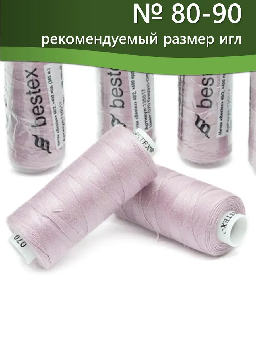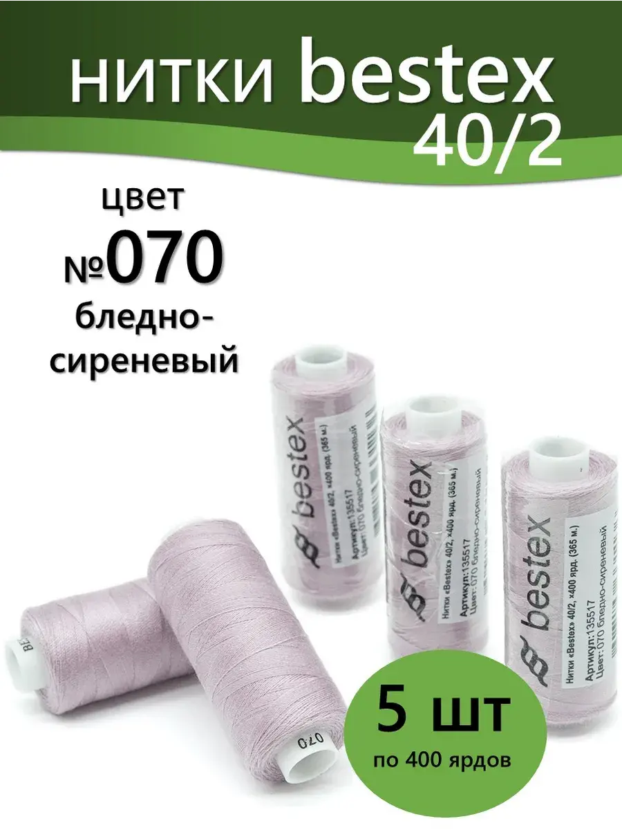 Набор ниток Bestex №40/2 – прекрасный вариант для шитья, ремонта текстильных изделий, рукоделия. Подойдут для бытовых и промышленных швейных машин. Изготовлены из 100 % полиэстера, прочные на разрыв и слегка эластичные, равномерные по толщине, имеют правостороннюю крутку. Обработаны силиконом на 3%, поэтому меньше разрываются при работе на высоких скоростях. Не истончаются и не теряют цвет после многократных стирок и от воздействия ультрафиолетовых лучей. Усадка минимальна, ворс и узелки почти не выражены. Нитки №40/2 подходят для работы с легкими тканями и тканями среднего веса. Назначение: – ремонт текстильных изделий, штопка вещей из трикотажа; – обработка срезов; – шитье вручную и на швейной машине. Линейная плотность: 14,8 x 2 текс. Разрывная нагрузка: 1050 сН. Рекомендуемый размер иглы: №80-90. В упаковке 5 бобин в намотке 400 ярдов.