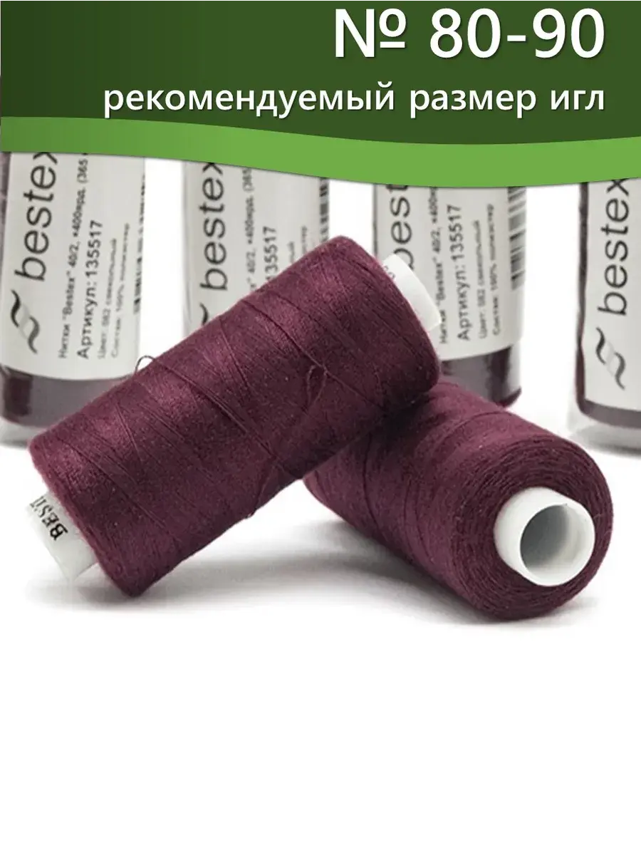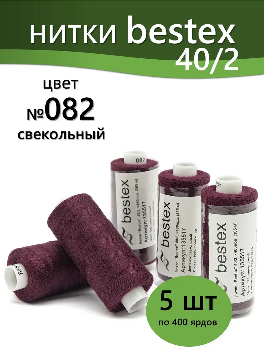 Набор ниток Bestex №40/2 – прекрасный вариант для шитья, ремонта текстильных изделий, рукоделия. Подойдут для бытовых и промышленных швейных машин. Изготовлены из 100 % полиэстера, прочные на разрыв и слегка эластичные, равномерные по толщине, имеют правостороннюю крутку. Обработаны силиконом на 3%, поэтому меньше разрываются при работе на высоких скоростях. Не истончаются и не теряют цвет после многократных стирок и от воздействия ультрафиолетовых лучей. Усадка минимальна, ворс и узелки почти не выражены. Нитки №40/2 подходят для работы с легкими тканями и тканями среднего веса. Назначение: – ремонт текстильных изделий, штопка вещей из трикотажа; – обработка срезов; – шитье вручную и на швейной машине. Линейная плотность: 14,8 x 2 текс. Разрывная нагрузка: 1050 сН. Рекомендуемый размер иглы: №80-90. В упаковке 5 бобин в намотке 400 ярдов.