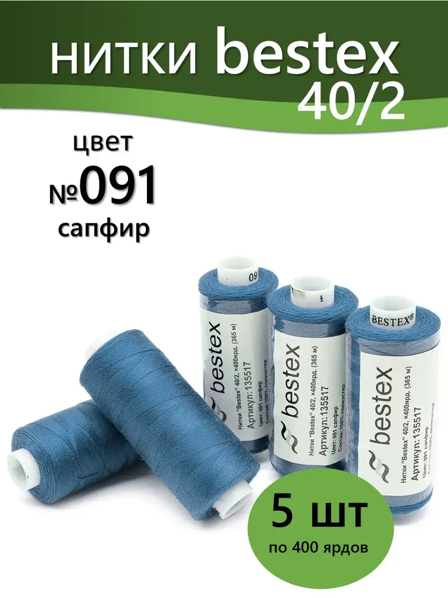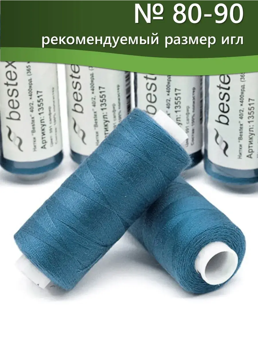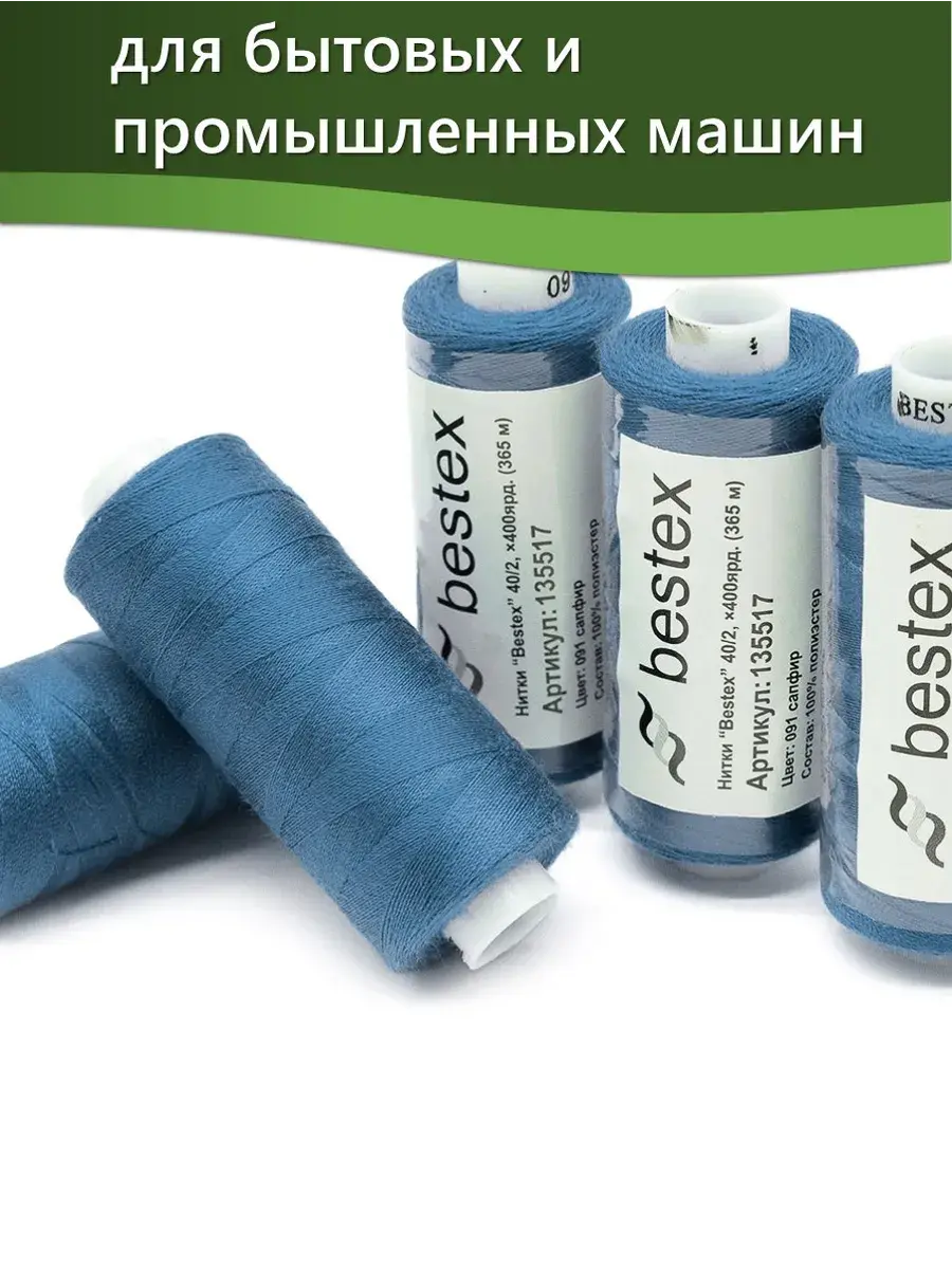 Набор ниток Bestex №40/2 – прекрасный вариант для шитья, ремонта текстильных изделий, рукоделия. Подойдут для бытовых и промышленных швейных машин. Изготовлены из 100 % полиэстера, прочные на разрыв и слегка эластичные, равномерные по толщине, имеют правостороннюю крутку. Обработаны силиконом на 3%, поэтому меньше разрываются при работе на высоких скоростях. Не истончаются и не теряют цвет после многократных стирок и от воздействия ультрафиолетовых лучей. Усадка минимальна, ворс и узелки почти не выражены. Нитки №40/2 подходят для работы с легкими тканями и тканями среднего веса. Назначение: – ремонт текстильных изделий, штопка вещей из трикотажа; – обработка срезов; – шитье вручную и на швейной машине. Линейная плотность: 14,8 x 2 текс. Разрывная нагрузка: 1050 сН. Рекомендуемый размер иглы: №80-90. В упаковке 5 бобин в намотке 400 ярдов.