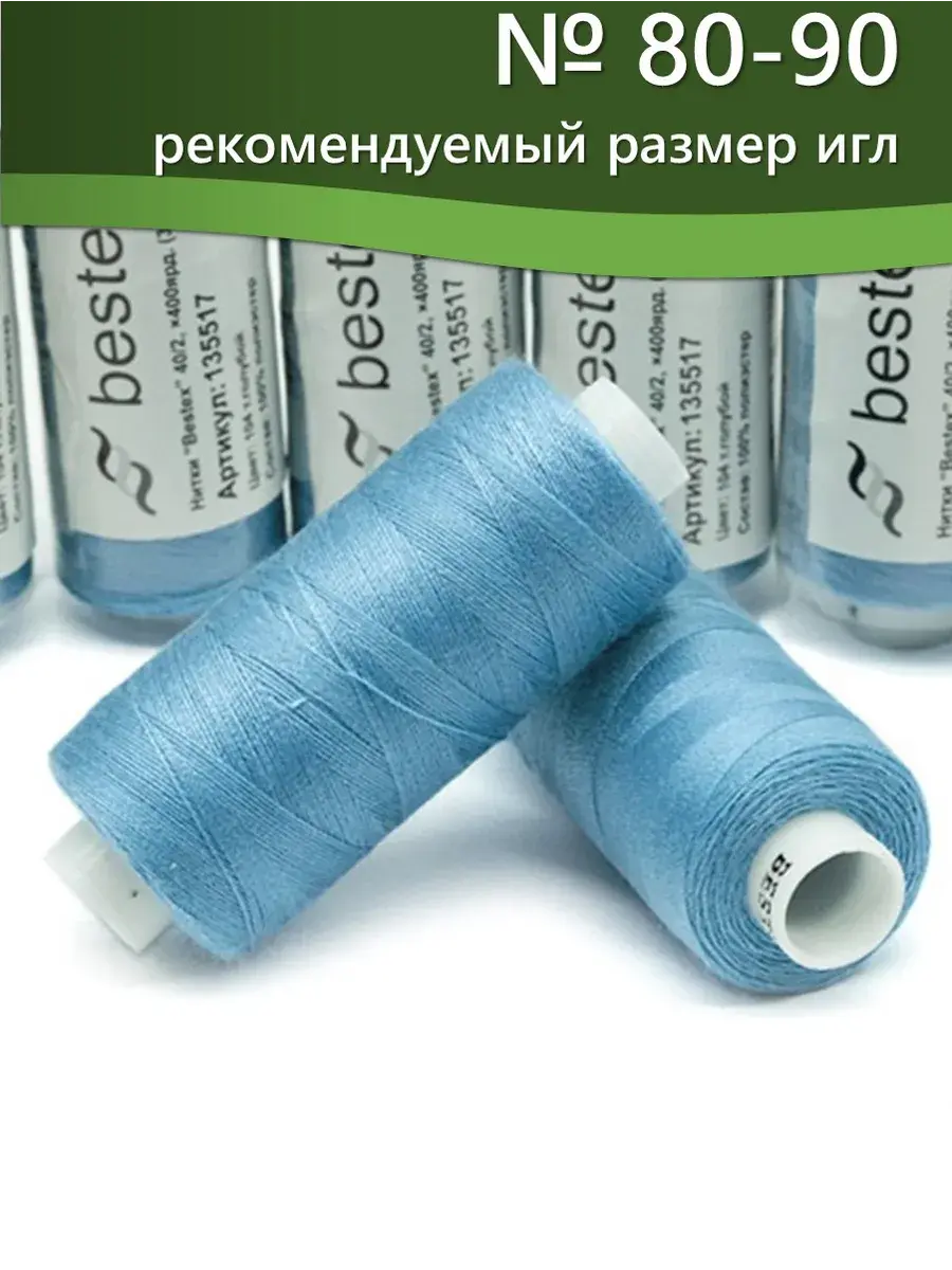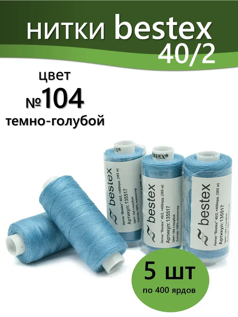 Набор ниток Bestex №40/2 – прекрасный вариант для шитья, ремонта текстильных изделий, рукоделия. Подойдут для бытовых и промышленных швейных машин. Изготовлены из 100 % полиэстера, прочные на разрыв и слегка эластичные, равномерные по толщине, имеют правостороннюю крутку. Обработаны силиконом на 3%, поэтому меньше разрываются при работе на высоких скоростях. Не истончаются и не теряют цвет после многократных стирок и от воздействия ультрафиолетовых лучей. Усадка минимальна, ворс и узелки почти не выражены. Нитки №40/2 подходят для работы с легкими тканями и тканями среднего веса. Назначение: – ремонт текстильных изделий, штопка вещей из трикотажа; – обработка срезов; – шитье вручную и на швейной машине. Линейная плотность: 14,8 x 2 текс. Разрывная нагрузка: 1050 сН. Рекомендуемый размер иглы: №80-90. В упаковке 5 бобин в намотке 400 ярдов.