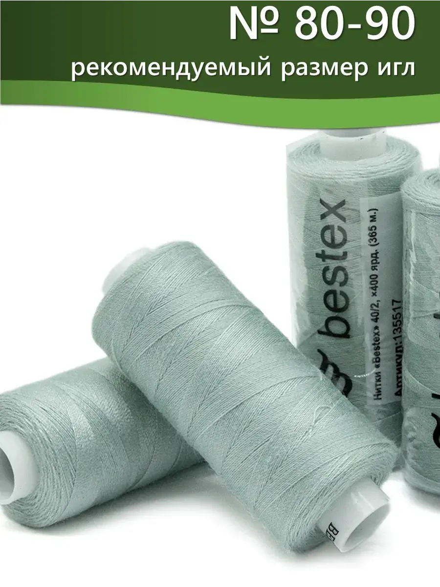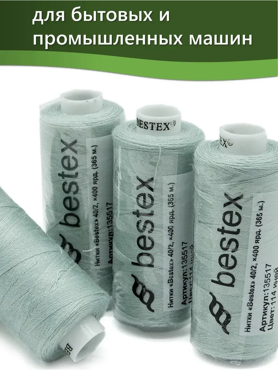 Набор ниток Bestex №40/2 – прекрасный вариант для шитья, ремонта текстильных изделий, рукоделия. Подойдут для бытовых и промышленных швейных машин. Изготовлены из 100 % полиэстера, прочные на разрыв и слегка эластичные, равномерные по толщине, имеют правостороннюю крутку. Обработаны силиконом на 3%, поэтому меньше разрываются при работе на высоких скоростях. Не истончаются и не теряют цвет после многократных стирок и от воздействия ультрафиолетовых лучей. Усадка минимальна, ворс и узелки почти не выражены. Нитки №40/2 подходят для работы с легкими тканями и тканями среднего веса. Назначение: – ремонт текстильных изделий, штопка вещей из трикотажа; – обработка срезов; – шитье вручную и на швейной машине. Линейная плотность: 14,8 x 2 текс. Разрывная нагрузка: 1050 сН. Рекомендуемый размер иглы: №80-90. В упаковке 5 бобин в намотке 400 ярдов.