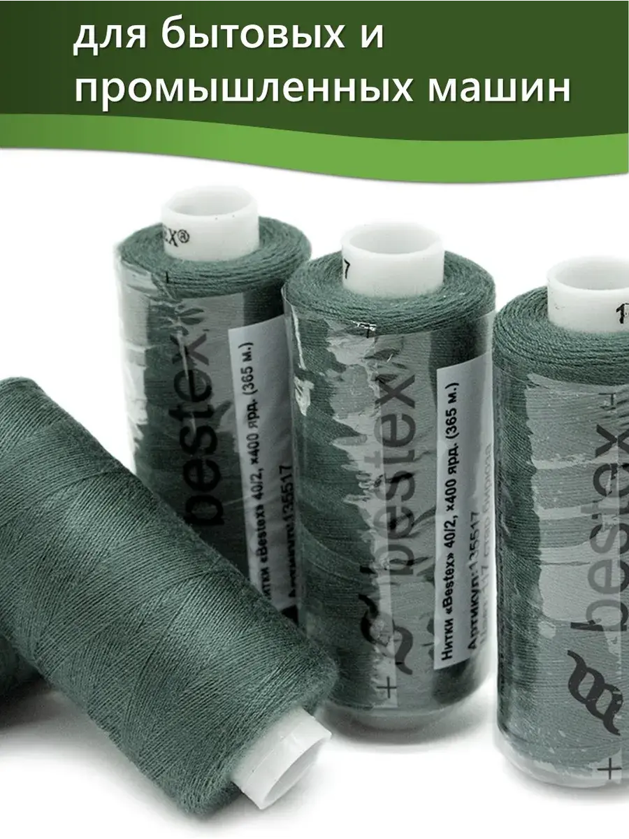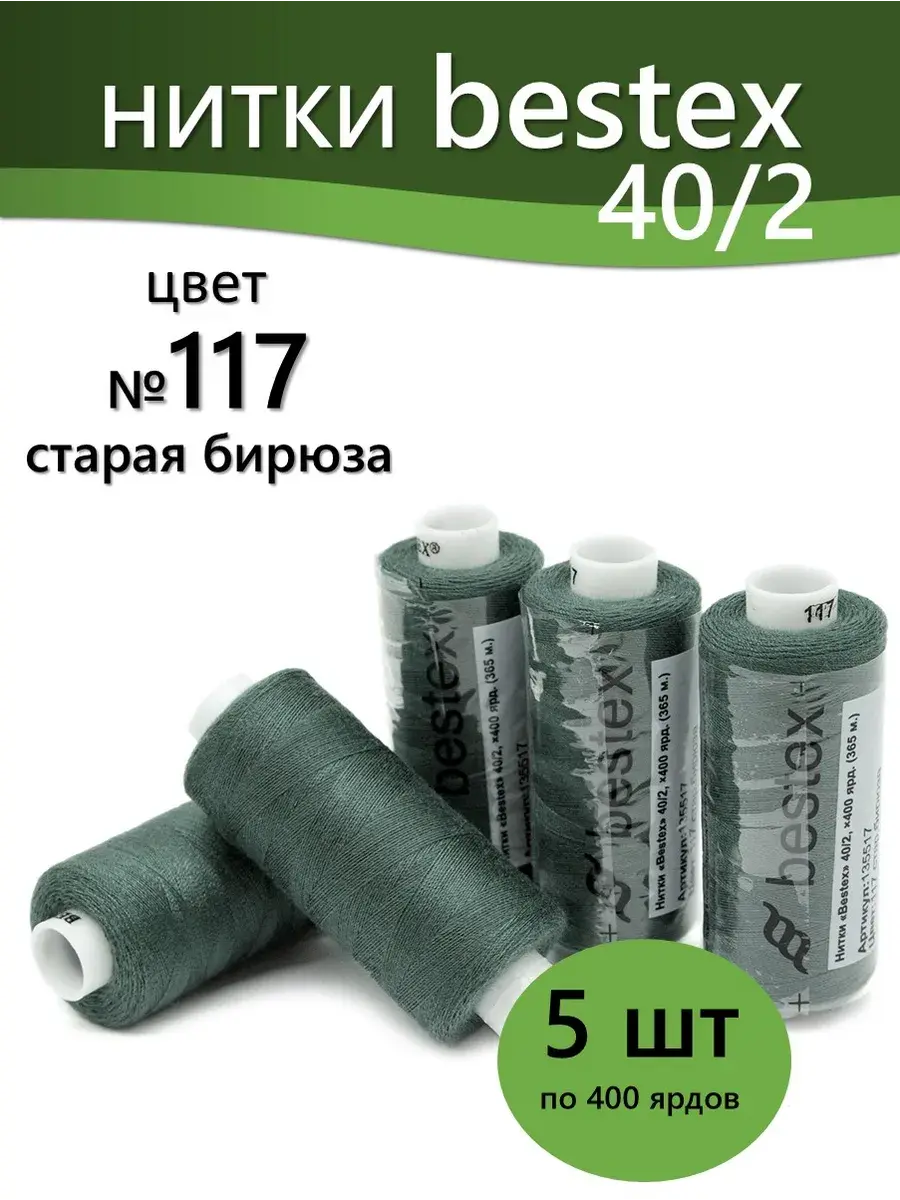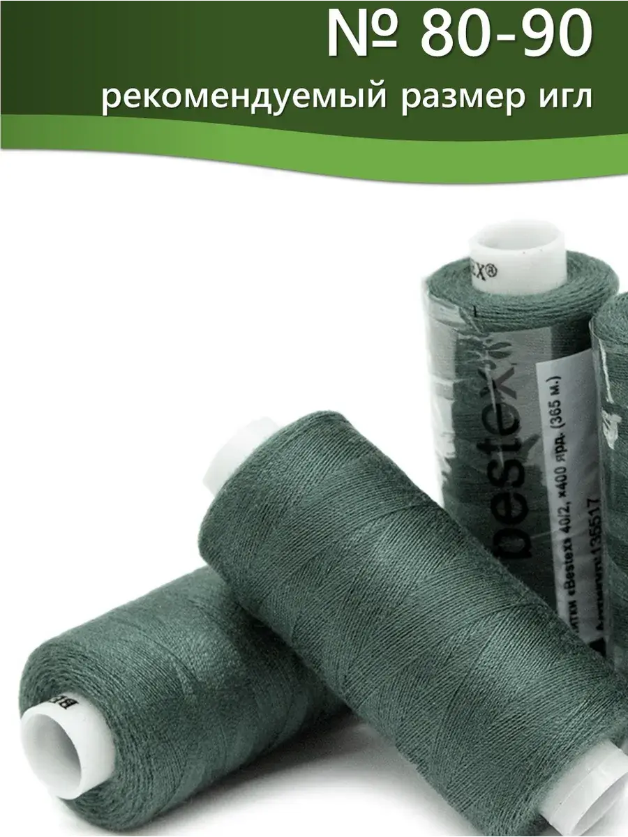 Набор ниток Bestex №40/2 – прекрасный вариант для шитья, ремонта текстильных изделий, рукоделия. Подойдут для бытовых и промышленных швейных машин. Изготовлены из 100 % полиэстера, прочные на разрыв и слегка эластичные, равномерные по толщине, имеют правостороннюю крутку. Обработаны силиконом на 3%, поэтому меньше разрываются при работе на высоких скоростях. Не истончаются и не теряют цвет после многократных стирок и от воздействия ультрафиолетовых лучей. Усадка минимальна, ворс и узелки почти не выражены. Нитки №40/2 подходят для работы с легкими тканями и тканями среднего веса. Назначение: – ремонт текстильных изделий, штопка вещей из трикотажа; – обработка срезов; – шитье вручную и на швейной машине. Линейная плотность: 14,8 x 2 текс. Разрывная нагрузка: 1050 сН. Рекомендуемый размер иглы: №80-90. В упаковке 5 бобин в намотке 400 ярдов.