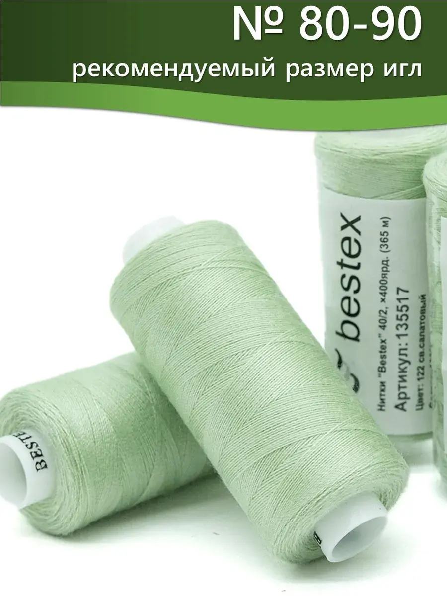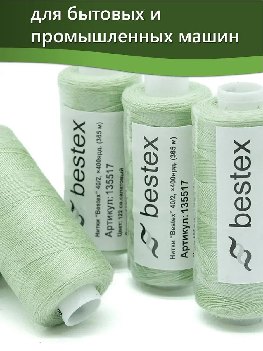 Набор ниток Bestex №40/2 – прекрасный вариант для шитья, ремонта текстильных изделий, рукоделия. Подойдут для бытовых и промышленных швейных машин. Изготовлены из 100 % полиэстера, прочные на разрыв и слегка эластичные, равномерные по толщине, имеют правостороннюю крутку. Обработаны силиконом на 3%, поэтому меньше разрываются при работе на высоких скоростях. Не истончаются и не теряют цвет после многократных стирок и от воздействия ультрафиолетовых лучей. Усадка минимальна, ворс и узелки почти не выражены. Нитки №40/2 подходят для работы с легкими тканями и тканями среднего веса. Назначение: – ремонт текстильных изделий, штопка вещей из трикотажа; – обработка срезов; – шитье вручную и на швейной машине. Линейная плотность: 14,8 x 2 текс. Разрывная нагрузка: 1050 сН. Рекомендуемый размер иглы: №80-90. В упаковке 5 бобин в намотке 400 ярдов.