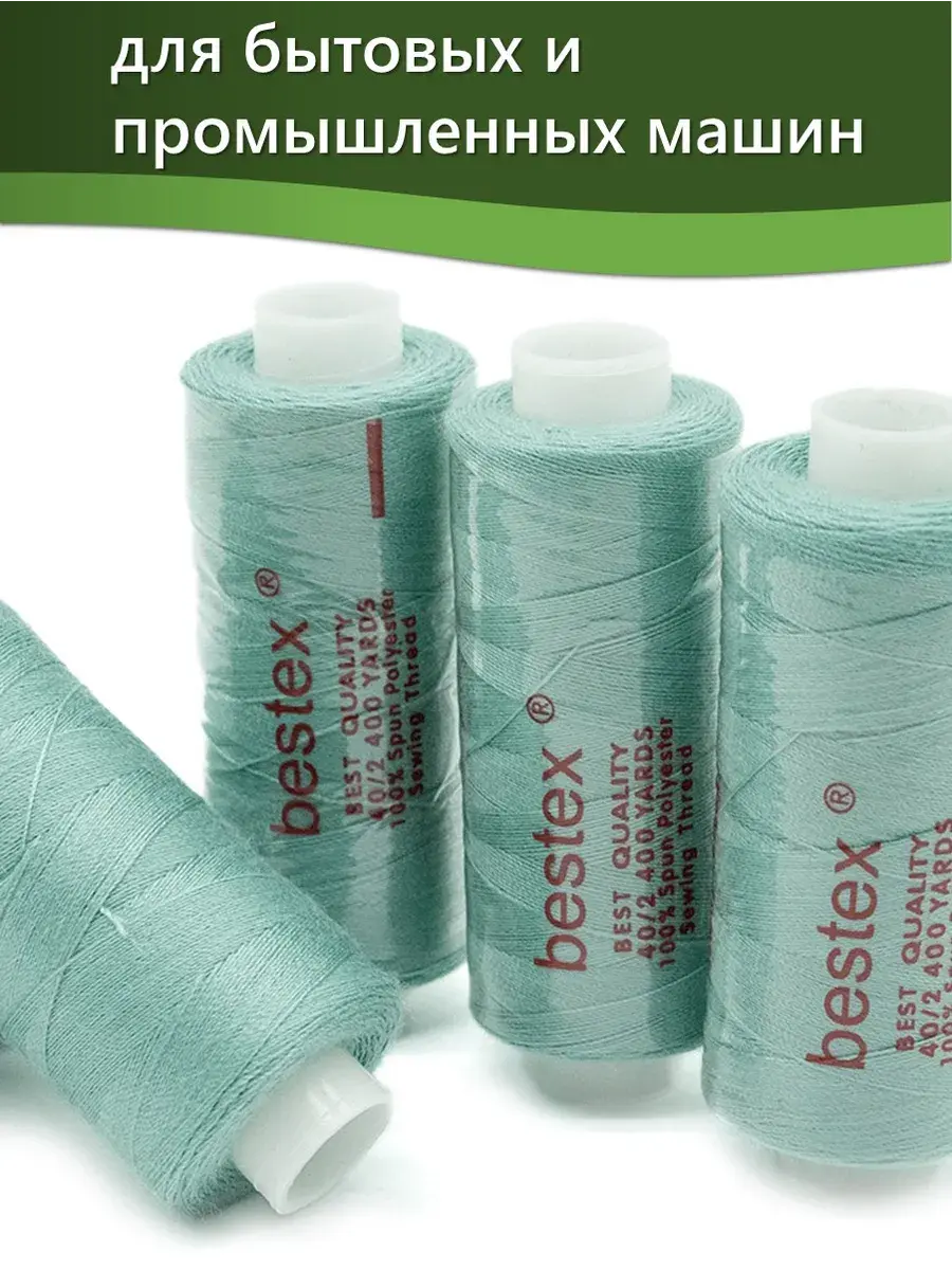 Набор ниток Bestex №40/2 – прекрасный вариант для шитья, ремонта текстильных изделий, рукоделия. Подойдут для бытовых и промышленных швейных машин. Изготовлены из 100 % полиэстера, прочные на разрыв и слегка эластичные, равномерные по толщине, имеют правостороннюю крутку. Обработаны силиконом на 3%, поэтому меньше разрываются при работе на высоких скоростях. Не истончаются и не теряют цвет после многократных стирок и от воздействия ультрафиолетовых лучей. Усадка минимальна, ворс и узелки почти не выражены. Нитки №40/2 подходят для работы с легкими тканями и тканями среднего веса. Назначение: – ремонт текстильных изделий, штопка вещей из трикотажа; – обработка срезов; – шитье вручную и на швейной машине. Линейная плотность: 14,8 x 2 текс. Разрывная нагрузка: 1050 сН. Рекомендуемый размер иглы: №80-90. В упаковке 5 бобин в намотке 400 ярдов.