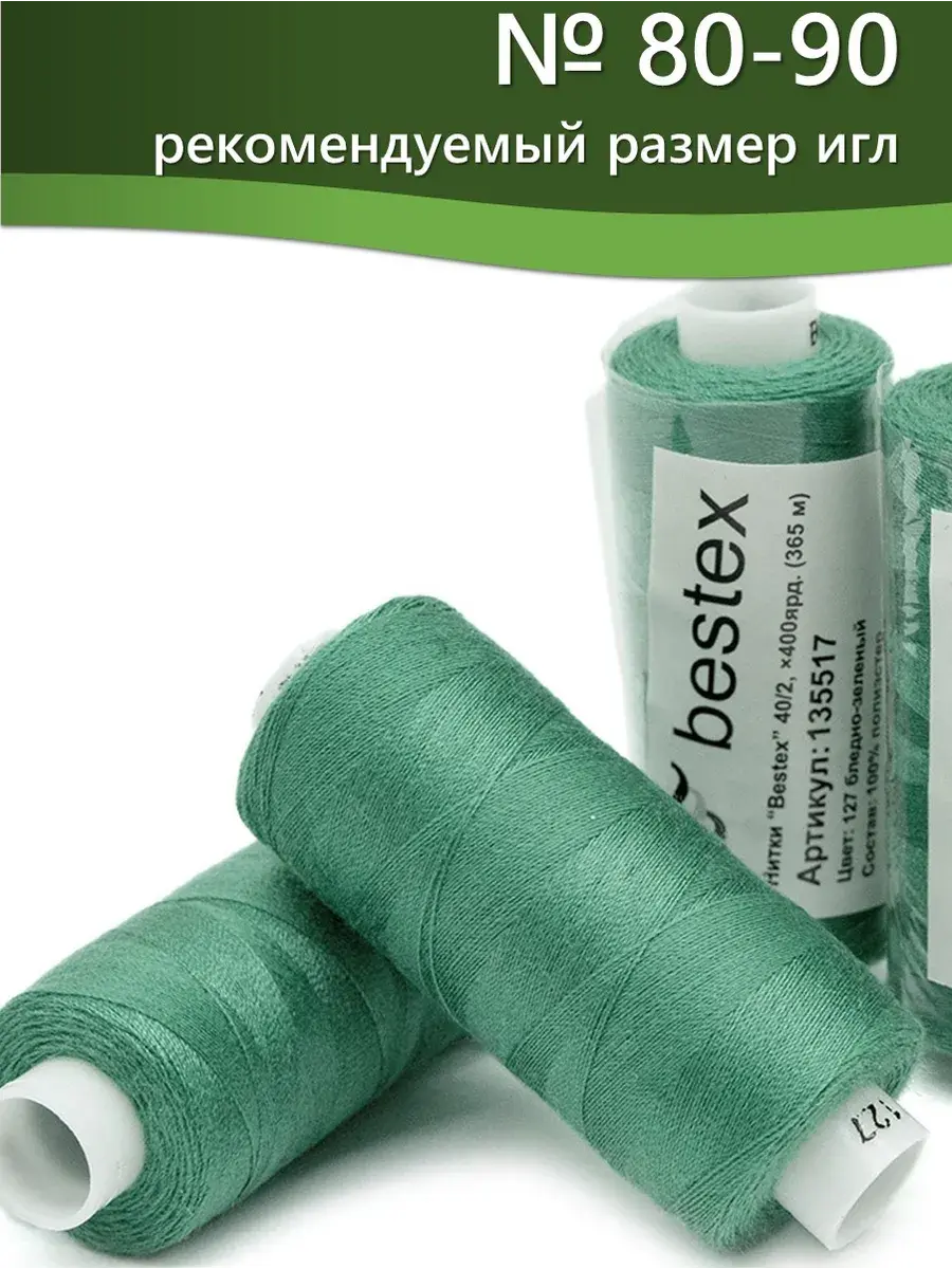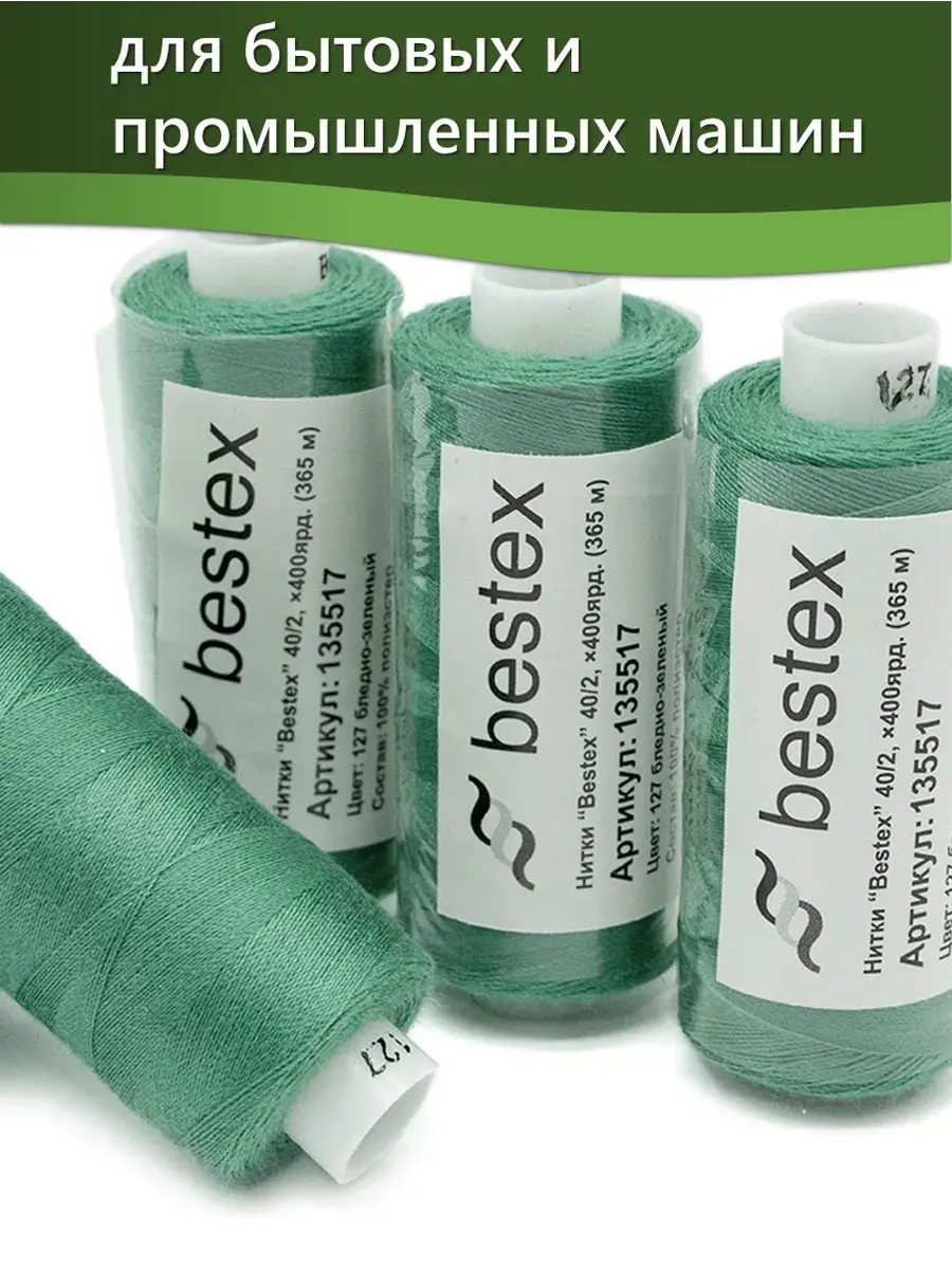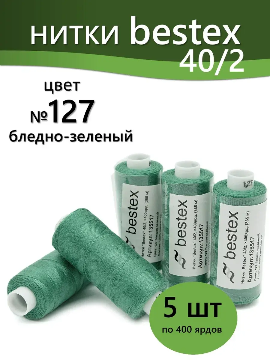 Набор ниток Bestex №40/2 – прекрасный вариант для шитья, ремонта текстильных изделий, рукоделия. Подойдут для бытовых и промышленных швейных машин. Изготовлены из 100 % полиэстера, прочные на разрыв и слегка эластичные, равномерные по толщине, имеют правостороннюю крутку. Обработаны силиконом на 3%, поэтому меньше разрываются при работе на высоких скоростях. Не истончаются и не теряют цвет после многократных стирок и от воздействия ультрафиолетовых лучей. Усадка минимальна, ворс и узелки почти не выражены. Нитки №40/2 подходят для работы с легкими тканями и тканями среднего веса. Назначение: – ремонт текстильных изделий, штопка вещей из трикотажа; – обработка срезов; – шитье вручную и на швейной машине. Линейная плотность: 14,8 x 2 текс. Разрывная нагрузка: 1050 сН. Рекомендуемый размер иглы: №80-90. В упаковке 5 бобин в намотке 400 ярдов.