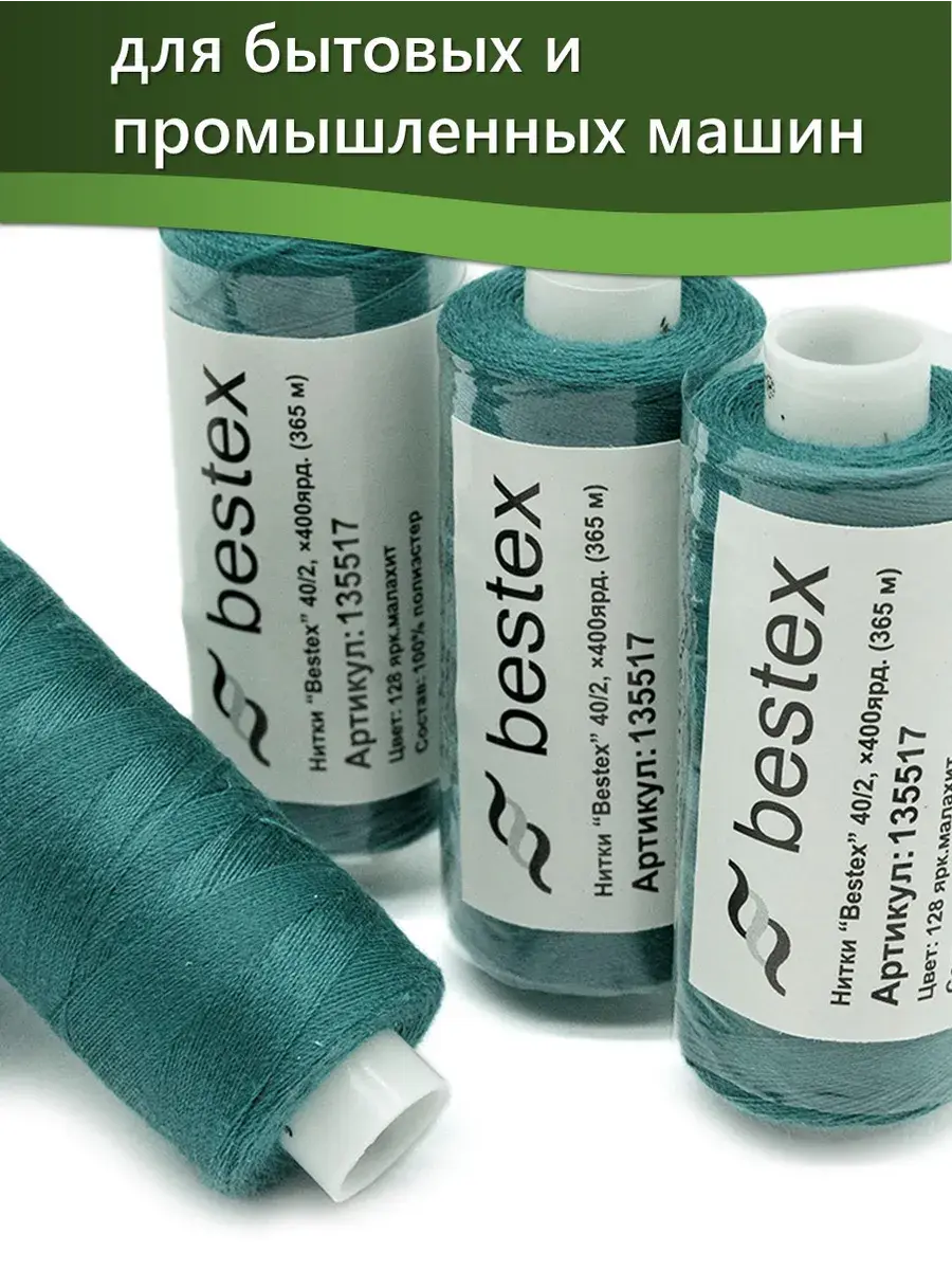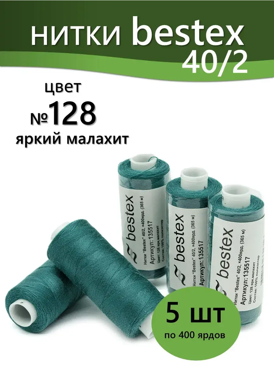 Набор ниток Bestex №40/2 – прекрасный вариант для шитья, ремонта текстильных изделий, рукоделия. Подойдут для бытовых и промышленных швейных машин. Изготовлены из 100 % полиэстера, прочные на разрыв и слегка эластичные, равномерные по толщине, имеют правостороннюю крутку. Обработаны силиконом на 3%, поэтому меньше разрываются при работе на высоких скоростях. Не истончаются и не теряют цвет после многократных стирок и от воздействия ультрафиолетовых лучей. Усадка минимальна, ворс и узелки почти не выражены. Нитки №40/2 подходят для работы с легкими тканями и тканями среднего веса. Назначение: – ремонт текстильных изделий, штопка вещей из трикотажа; – обработка срезов; – шитье вручную и на швейной машине. Линейная плотность: 14,8 x 2 текс. Разрывная нагрузка: 1050 сН. Рекомендуемый размер иглы: №80-90. В упаковке 5 бобин в намотке 400 ярдов.