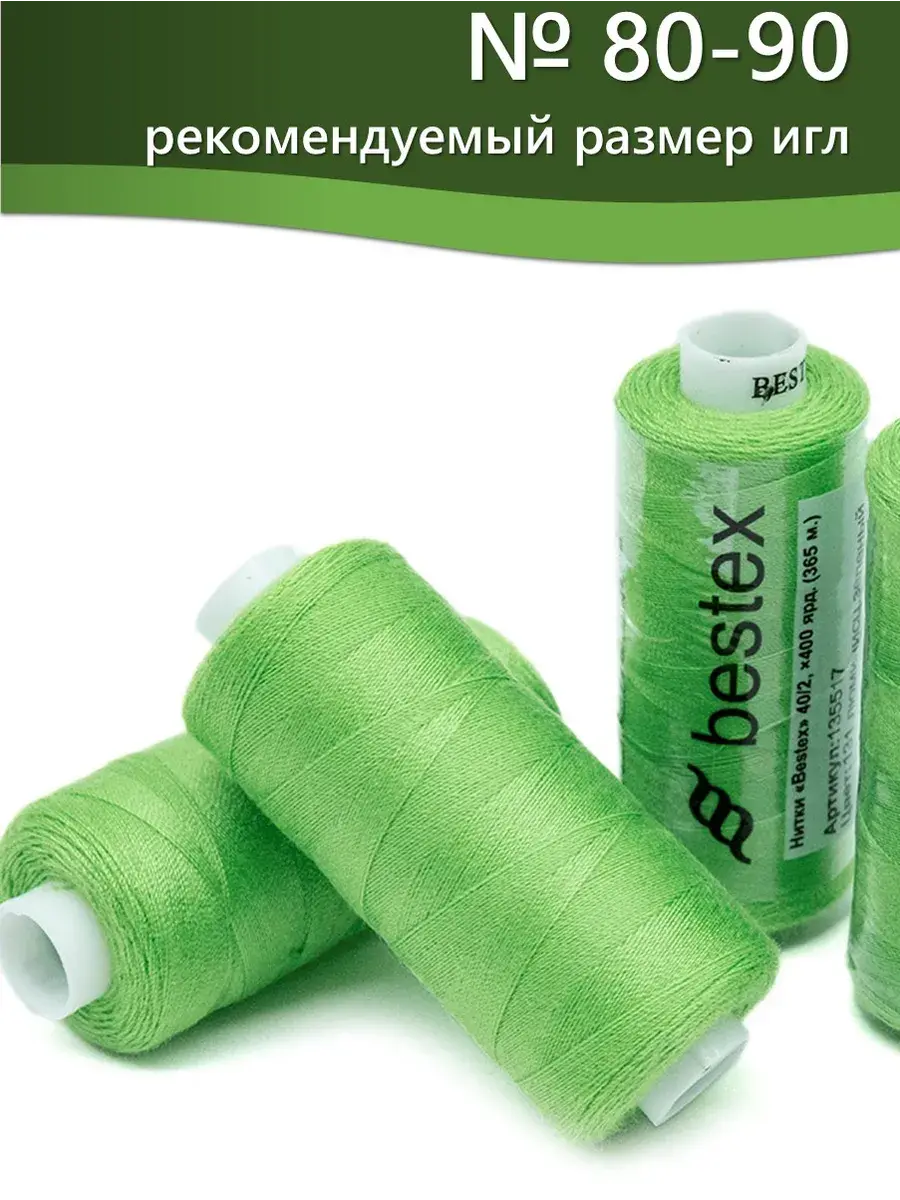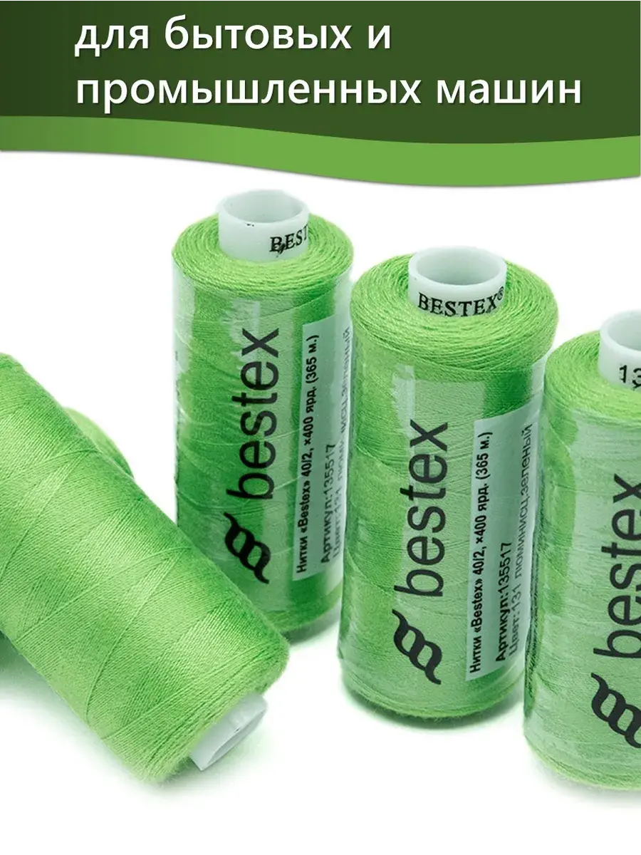 Набор ниток Bestex №40/2 – прекрасный вариант для шитья, ремонта текстильных изделий, рукоделия. Подойдут для бытовых и промышленных швейных машин. Изготовлены из 100 % полиэстера, прочные на разрыв и слегка эластичные, равномерные по толщине, имеют правостороннюю крутку. Обработаны силиконом на 3%, поэтому меньше разрываются при работе на высоких скоростях. Не истончаются и не теряют цвет после многократных стирок и от воздействия ультрафиолетовых лучей. Усадка минимальна, ворс и узелки почти не выражены. Нитки №40/2 подходят для работы с легкими тканями и тканями среднего веса. Назначение: – ремонт текстильных изделий, штопка вещей из трикотажа; – обработка срезов; – шитье вручную и на швейной машине. Линейная плотность: 14,8 x 2 текс. Разрывная нагрузка: 1050 сН. Рекомендуемый размер иглы: №80-90. В упаковке 5 бобин в намотке 400 ярдов.