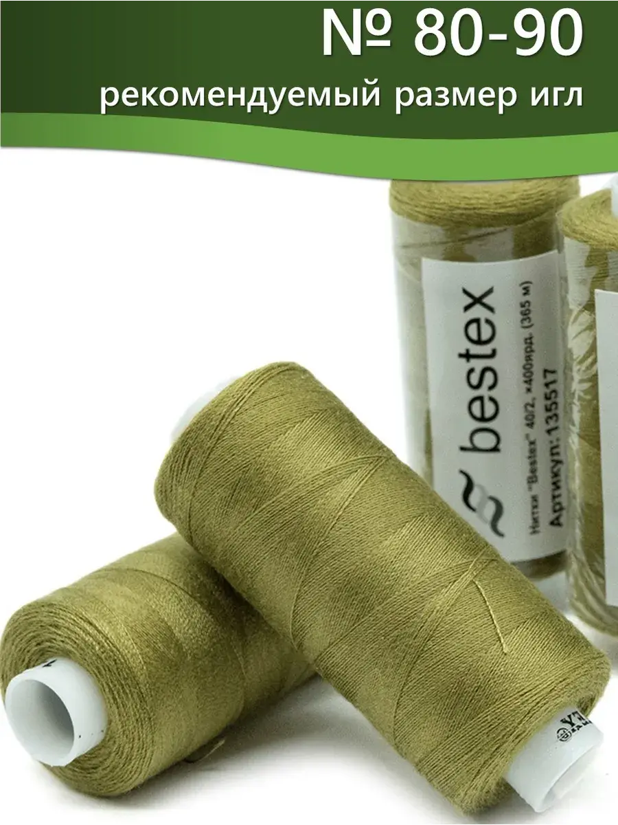 Набор ниток Bestex №40/2 – прекрасный вариант для шитья, ремонта текстильных изделий, рукоделия. Подойдут для бытовых и промышленных швейных машин. Изготовлены из 100 % полиэстера, прочные на разрыв и слегка эластичные, равномерные по толщине, имеют правостороннюю крутку. Обработаны силиконом на 3%, поэтому меньше разрываются при работе на высоких скоростях. Не истончаются и не теряют цвет после многократных стирок и от воздействия ультрафиолетовых лучей. Усадка минимальна, ворс и узелки почти не выражены. Нитки №40/2 подходят для работы с легкими тканями и тканями среднего веса. Назначение: – ремонт текстильных изделий, штопка вещей из трикотажа; – обработка срезов; – шитье вручную и на швейной машине. Линейная плотность: 14,8 x 2 текс. Разрывная нагрузка: 1050 сН. Рекомендуемый размер иглы: №80-90. В упаковке 5 бобин в намотке 400 ярдов.