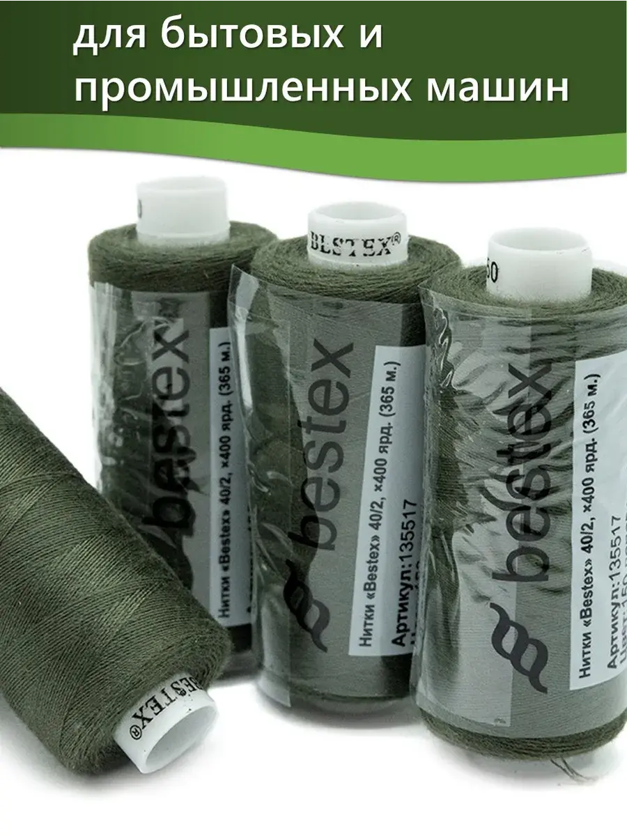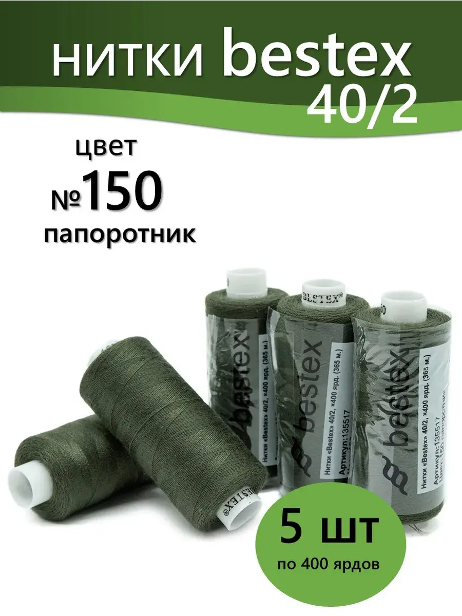 Набор ниток Bestex №40/2 – прекрасный вариант для шитья, ремонта текстильных изделий, рукоделия. Подойдут для бытовых и промышленных швейных машин. Изготовлены из 100 % полиэстера, прочные на разрыв и слегка эластичные, равномерные по толщине, имеют правостороннюю крутку. Обработаны силиконом на 3%, поэтому меньше разрываются при работе на высоких скоростях. Не истончаются и не теряют цвет после многократных стирок и от воздействия ультрафиолетовых лучей. Усадка минимальна, ворс и узелки почти не выражены. Нитки №40/2 подходят для работы с легкими тканями и тканями среднего веса. Назначение: – ремонт текстильных изделий, штопка вещей из трикотажа; – обработка срезов; – шитье вручную и на швейной машине. Линейная плотность: 14,8 x 2 текс. Разрывная нагрузка: 1050 сН. Рекомендуемый размер иглы: №80-90. В упаковке 5 бобин в намотке 400 ярдов.