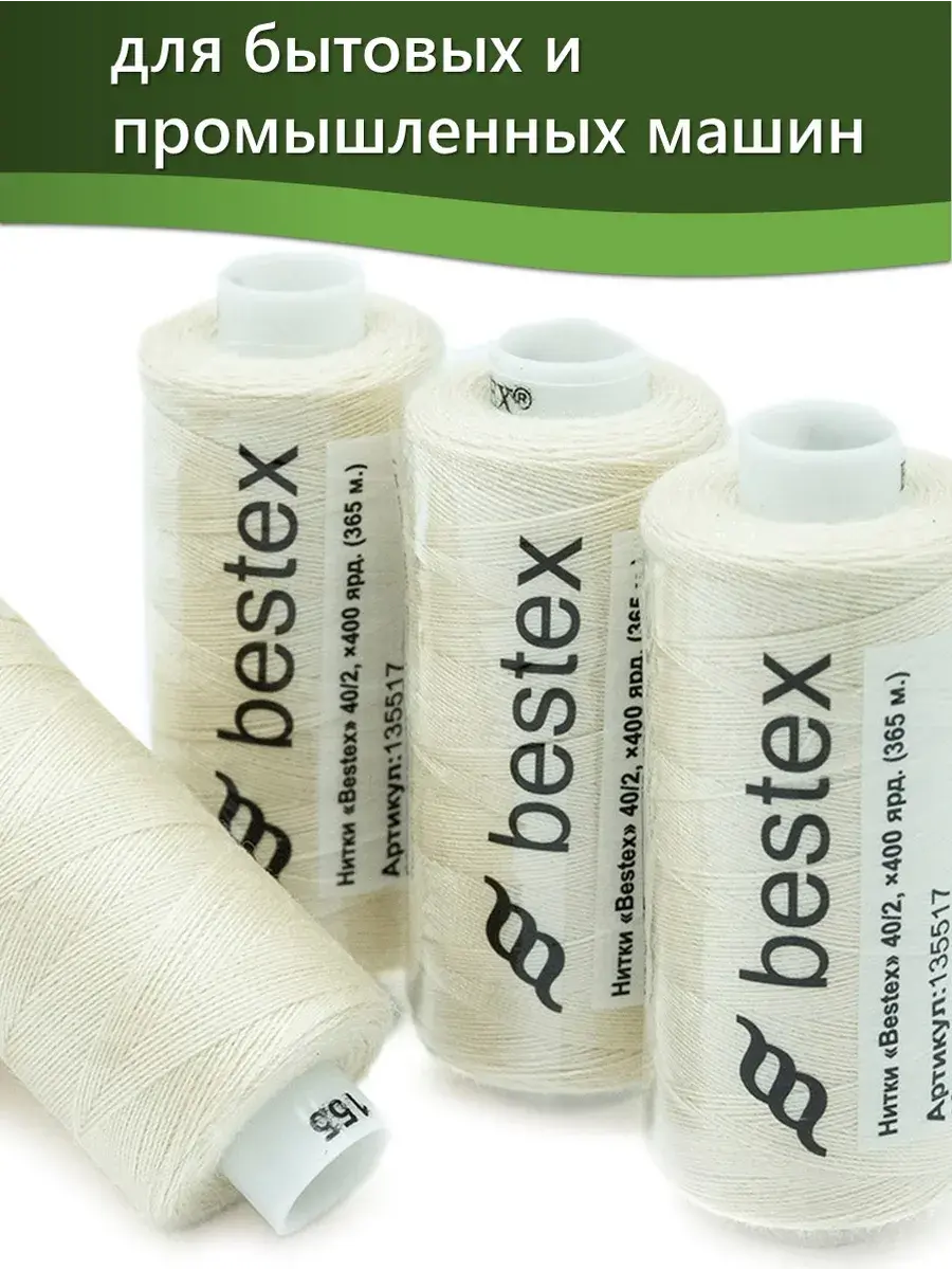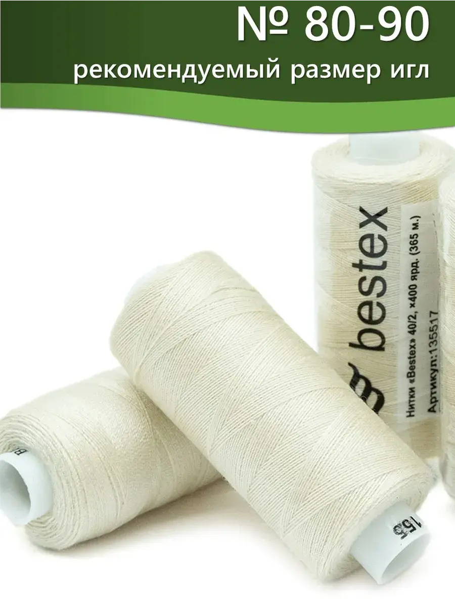 Набор ниток Bestex №40/2 – прекрасный вариант для шитья, ремонта текстильных изделий, рукоделия. Подойдут для бытовых и промышленных швейных машин. Изготовлены из 100 % полиэстера, прочные на разрыв и слегка эластичные, равномерные по толщине, имеют правостороннюю крутку. Обработаны силиконом на 3%, поэтому меньше разрываются при работе на высоких скоростях. Не истончаются и не теряют цвет после многократных стирок и от воздействия ультрафиолетовых лучей. Усадка минимальна, ворс и узелки почти не выражены. Нитки №40/2 подходят для работы с легкими тканями и тканями среднего веса. Назначение: – ремонт текстильных изделий, штопка вещей из трикотажа; – обработка срезов; – шитье вручную и на швейной машине. Линейная плотность: 14,8 x 2 текс. Разрывная нагрузка: 1050 сН. Рекомендуемый размер иглы: №80-90. В упаковке 5 бобин в намотке 400 ярдов.