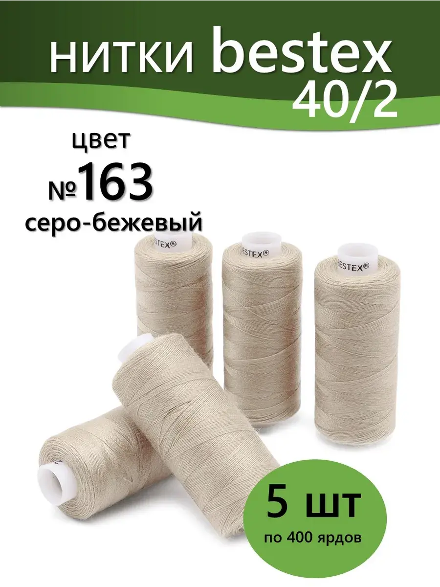 Набор ниток Bestex №40/2 – прекрасный вариант для шитья, ремонта текстильных изделий, рукоделия. Подойдут для бытовых и промышленных швейных машин. Изготовлены из 100 % полиэстера, прочные на разрыв и слегка эластичные, равномерные по толщине, имеют правостороннюю крутку. Обработаны силиконом на 3%, поэтому меньше разрываются при работе на высоких скоростях. Не истончаются и не теряют цвет после многократных стирок и от воздействия ультрафиолетовых лучей. Усадка минимальна, ворс и узелки почти не выражены. Нитки №40/2 подходят для работы с легкими тканями и тканями среднего веса. Назначение: – ремонт текстильных изделий, штопка вещей из трикотажа; – обработка срезов; – шитье вручную и на швейной машине. Линейная плотность: 14,8 x 2 текс. Разрывная нагрузка: 1050 сН. Рекомендуемый размер иглы: №80-90. В упаковке 5 бобин в намотке 400 ярдов.