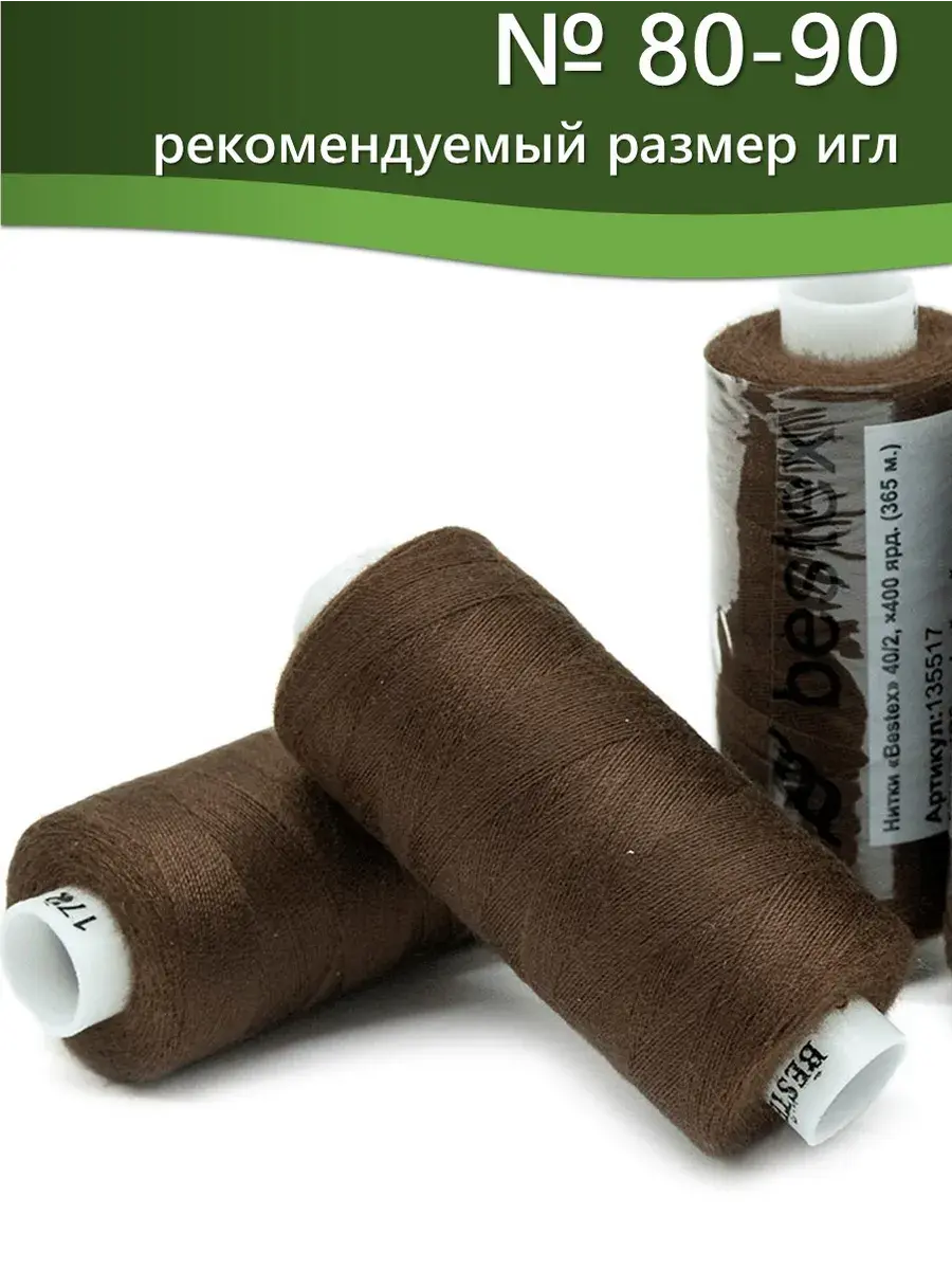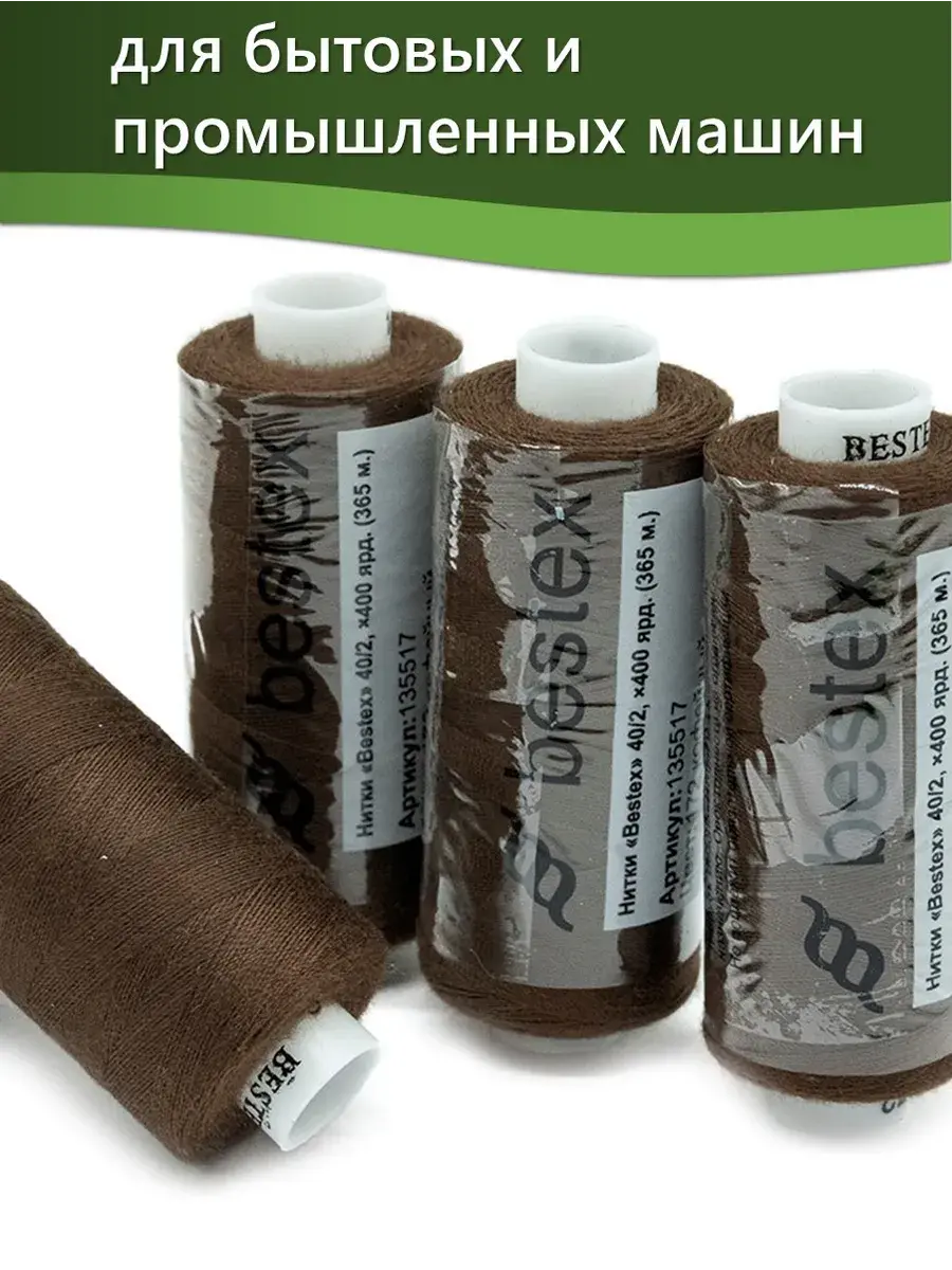 Набор ниток Bestex №40/2 – прекрасный вариант для шитья, ремонта текстильных изделий, рукоделия. Подойдут для бытовых и промышленных швейных машин. Изготовлены из 100 % полиэстера, прочные на разрыв и слегка эластичные, равномерные по толщине, имеют правостороннюю крутку. Обработаны силиконом на 3%, поэтому меньше разрываются при работе на высоких скоростях. Не истончаются и не теряют цвет после многократных стирок и от воздействия ультрафиолетовых лучей. Усадка минимальна, ворс и узелки почти не выражены. Нитки №40/2 подходят для работы с легкими тканями и тканями среднего веса. Назначение: – ремонт текстильных изделий, штопка вещей из трикотажа; – обработка срезов; – шитье вручную и на швейной машине. Линейная плотность: 14,8 x 2 текс. Разрывная нагрузка: 1050 сН. Рекомендуемый размер иглы: №80-90. В упаковке 5 бобин в намотке 400 ярдов.