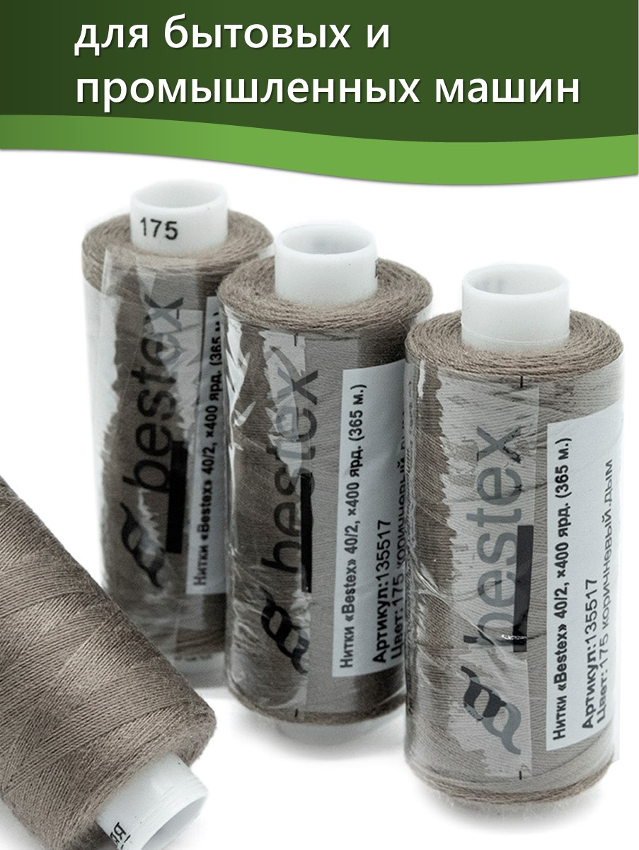 Набор ниток Bestex №40/2 – прекрасный вариант для шитья, ремонта текстильных изделий, рукоделия. Подойдут для бытовых и промышленных швейных машин. Изготовлены из 100 % полиэстера, прочные на разрыв и слегка эластичные, равномерные по толщине, имеют правостороннюю крутку. Обработаны силиконом на 3%, поэтому меньше разрываются при работе на высоких скоростях. Не истончаются и не теряют цвет после многократных стирок и от воздействия ультрафиолетовых лучей. Усадка минимальна, ворс и узелки почти не выражены. Нитки №40/2 подходят для работы с легкими тканями и тканями среднего веса. Назначение: – ремонт текстильных изделий, штопка вещей из трикотажа; – обработка срезов; – шитье вручную и на швейной машине. Линейная плотность: 14,8 x 2 текс. Разрывная нагрузка: 1050 сН. Рекомендуемый размер иглы: №80-90. В упаковке 5 бобин в намотке 400 ярдов.