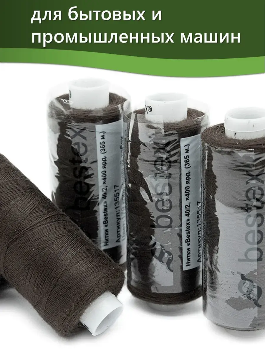 Набор ниток Bestex №40/2 – прекрасный вариант для шитья, ремонта текстильных изделий, рукоделия. Подойдут для бытовых и промышленных швейных машин. Изготовлены из 100 % полиэстера, прочные на разрыв и слегка эластичные, равномерные по толщине, имеют правостороннюю крутку. Обработаны силиконом на 3%, поэтому меньше разрываются при работе на высоких скоростях. Не истончаются и не теряют цвет после многократных стирок и от воздействия ультрафиолетовых лучей. Усадка минимальна, ворс и узелки почти не выражены. Нитки №40/2 подходят для работы с легкими тканями и тканями среднего веса. Назначение: – ремонт текстильных изделий, штопка вещей из трикотажа; – обработка срезов; – шитье вручную и на швейной машине. Линейная плотность: 14,8 x 2 текс. Разрывная нагрузка: 1050 сН. Рекомендуемый размер иглы: №80-90. В упаковке 5 бобин в намотке 400 ярдов.