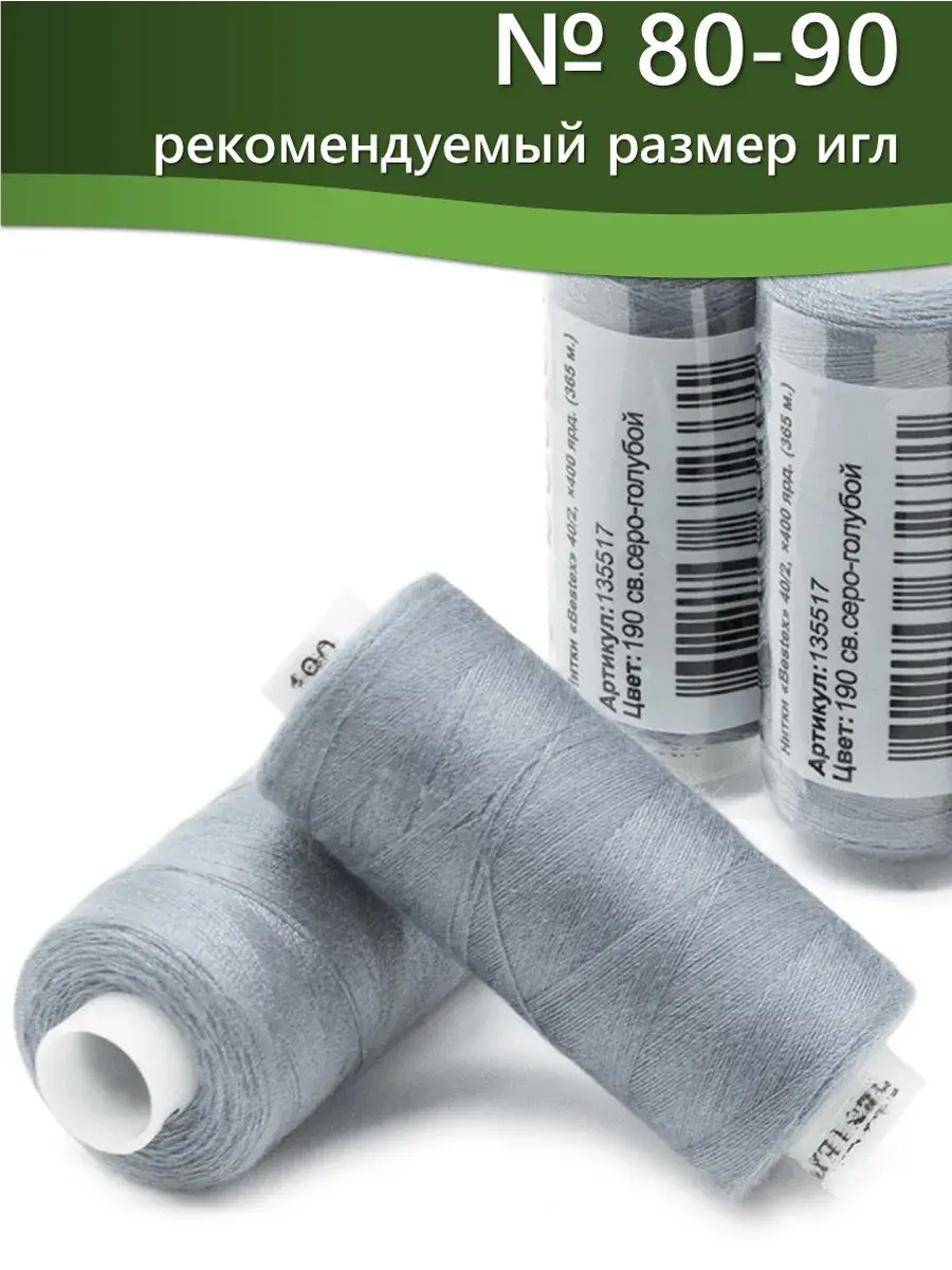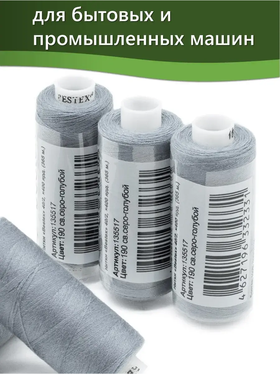 Набор ниток Bestex №40/2 – прекрасный вариант для шитья, ремонта текстильных изделий, рукоделия. Подойдут для бытовых и промышленных швейных машин. Изготовлены из 100 % полиэстера, прочные на разрыв и слегка эластичные, равномерные по толщине, имеют правостороннюю крутку. Обработаны силиконом на 3%, поэтому меньше разрываются при работе на высоких скоростях. Не истончаются и не теряют цвет после многократных стирок и от воздействия ультрафиолетовых лучей. Усадка минимальна, ворс и узелки почти не выражены. Нитки №40/2 подходят для работы с легкими тканями и тканями среднего веса. Назначение: – ремонт текстильных изделий, штопка вещей из трикотажа; – обработка срезов; – шитье вручную и на швейной машине. Линейная плотность: 14,8 x 2 текс. Разрывная нагрузка: 1050 сН. Рекомендуемый размер иглы: №80-90. В упаковке 5 бобин в намотке 400 ярдов.