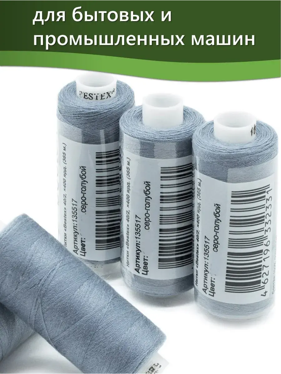 Набор ниток Bestex №40/2 – прекрасный вариант для шитья, ремонта текстильных изделий, рукоделия. Подойдут для бытовых и промышленных швейных машин. Изготовлены из 100 % полиэстера, прочные на разрыв и слегка эластичные, равномерные по толщине, имеют правостороннюю крутку. Обработаны силиконом на 3%, поэтому меньше разрываются при работе на высоких скоростях. Не истончаются и не теряют цвет после многократных стирок и от воздействия ультрафиолетовых лучей. Усадка минимальна, ворс и узелки почти не выражены. Нитки №40/2 подходят для работы с легкими тканями и тканями среднего веса. Назначение: – ремонт текстильных изделий, штопка вещей из трикотажа; – обработка срезов; – шитье вручную и на швейной машине. Линейная плотность: 14,8 x 2 текс. Разрывная нагрузка: 1050 сН. Рекомендуемый размер иглы: №80-90. В упаковке 5 бобин в намотке 400 ярдов.