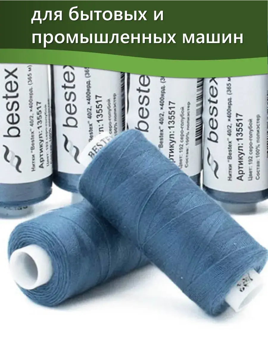 Набор ниток Bestex №40/2 – прекрасный вариант для шитья, ремонта текстильных изделий, рукоделия. Подойдут для бытовых и промышленных швейных машин. Изготовлены из 100 % полиэстера, прочные на разрыв и слегка эластичные, равномерные по толщине, имеют правостороннюю крутку. Обработаны силиконом на 3%, поэтому меньше разрываются при работе на высоких скоростях. Не истончаются и не теряют цвет после многократных стирок и от воздействия ультрафиолетовых лучей. Усадка минимальна, ворс и узелки почти не выражены. Нитки №40/2 подходят для работы с легкими тканями и тканями среднего веса. Назначение: – ремонт текстильных изделий, штопка вещей из трикотажа; – обработка срезов; – шитье вручную и на швейной машине. Линейная плотность: 14,8 x 2 текс. Разрывная нагрузка: 1050 сН. Рекомендуемый размер иглы: №80-90. В упаковке 5 бобин в намотке 400 ярдов.