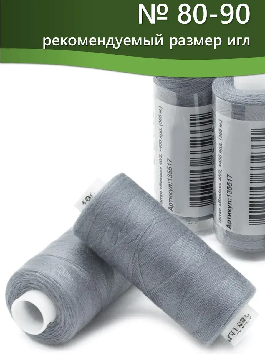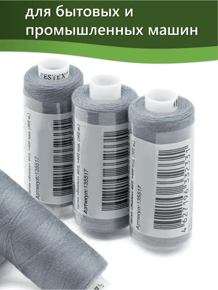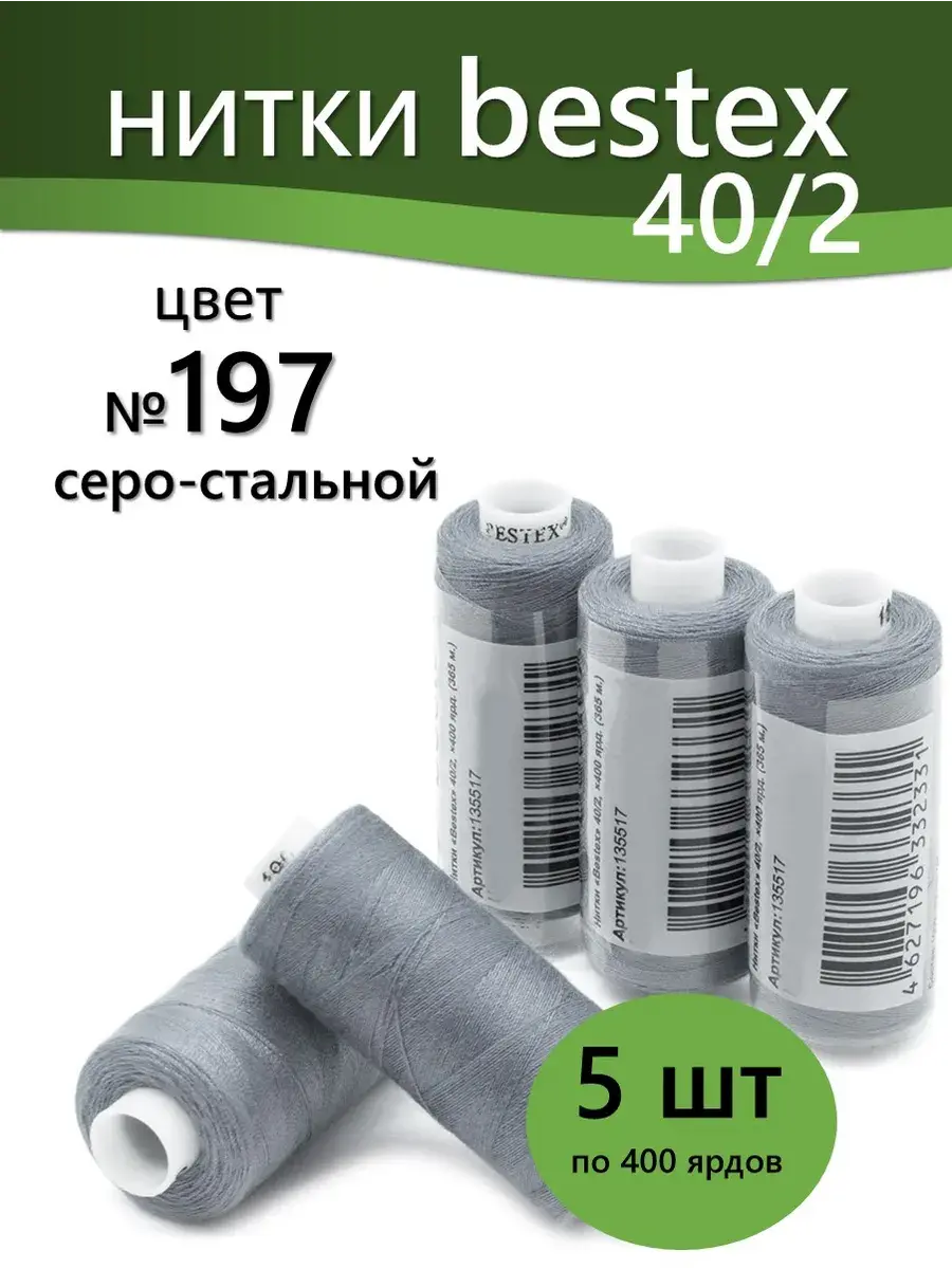 Набор ниток Bestex №40/2 – прекрасный вариант для шитья, ремонта текстильных изделий, рукоделия. Подойдут для бытовых и промышленных швейных машин. Изготовлены из 100 % полиэстера, прочные на разрыв и слегка эластичные, равномерные по толщине, имеют правостороннюю крутку. Обработаны силиконом на 3%, поэтому меньше разрываются при работе на высоких скоростях. Не истончаются и не теряют цвет после многократных стирок и от воздействия ультрафиолетовых лучей. Усадка минимальна, ворс и узелки почти не выражены. Нитки №40/2 подходят для работы с легкими тканями и тканями среднего веса. Назначение: – ремонт текстильных изделий, штопка вещей из трикотажа; – обработка срезов; – шитье вручную и на швейной машине. Линейная плотность: 14,8 x 2 текс. Разрывная нагрузка: 1050 сН. Рекомендуемый размер иглы: №80-90. В упаковке 5 бобин в намотке 400 ярдов.