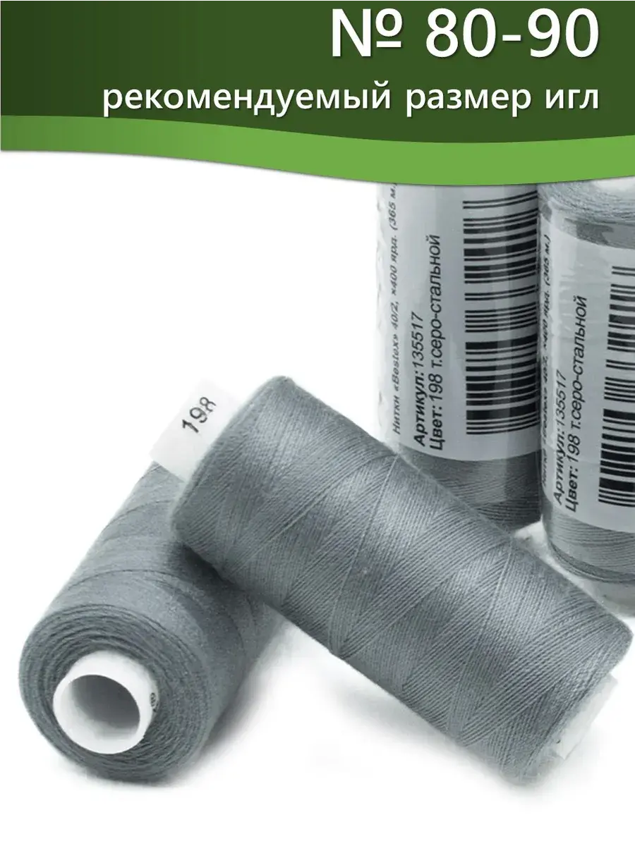 Набор ниток Bestex №40/2 – прекрасный вариант для шитья, ремонта текстильных изделий, рукоделия. Подойдут для бытовых и промышленных швейных машин. Изготовлены из 100 % полиэстера, прочные на разрыв и слегка эластичные, равномерные по толщине, имеют правостороннюю крутку. Обработаны силиконом на 3%, поэтому меньше разрываются при работе на высоких скоростях. Не истончаются и не теряют цвет после многократных стирок и от воздействия ультрафиолетовых лучей. Усадка минимальна, ворс и узелки почти не выражены. Нитки №40/2 подходят для работы с легкими тканями и тканями среднего веса. Назначение: – ремонт текстильных изделий, штопка вещей из трикотажа; – обработка срезов; – шитье вручную и на швейной машине. Линейная плотность: 14,8 x 2 текс. Разрывная нагрузка: 1050 сН. Рекомендуемый размер иглы: №80-90. В упаковке 5 бобин в намотке 400 ярдов.