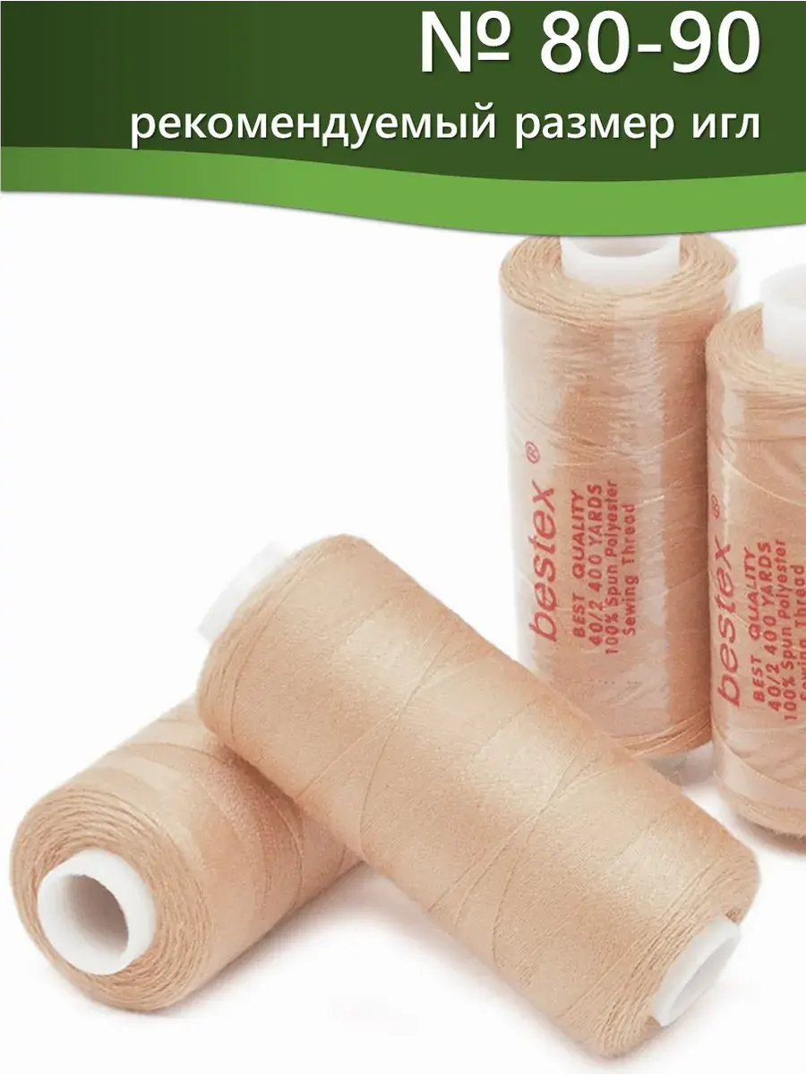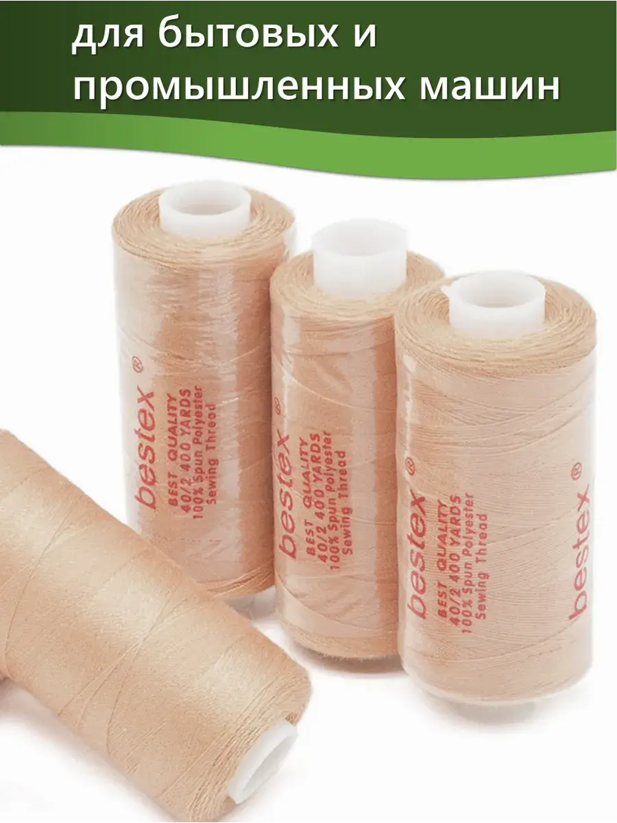 Набор ниток Bestex №40/2 – прекрасный вариант для шитья, ремонта текстильных изделий, рукоделия. Подойдут для бытовых и промышленных швейных машин. Изготовлены из 100 % полиэстера, прочные на разрыв и слегка эластичные, равномерные по толщине, имеют правостороннюю крутку. Обработаны силиконом на 3%, поэтому меньше разрываются при работе на высоких скоростях. Не истончаются и не теряют цвет после многократных стирок и от воздействия ультрафиолетовых лучей. Усадка минимальна, ворс и узелки почти не выражены. Нитки №40/2 подходят для работы с легкими тканями и тканями среднего веса. Назначение: – ремонт текстильных изделий, штопка вещей из трикотажа; – обработка срезов; – шитье вручную и на швейной машине. Линейная плотность: 14,8 x 2 текс. Разрывная нагрузка: 1050 сН. Рекомендуемый размер иглы: №80-90. В упаковке 5 бобин в намотке 400 ярдов.
