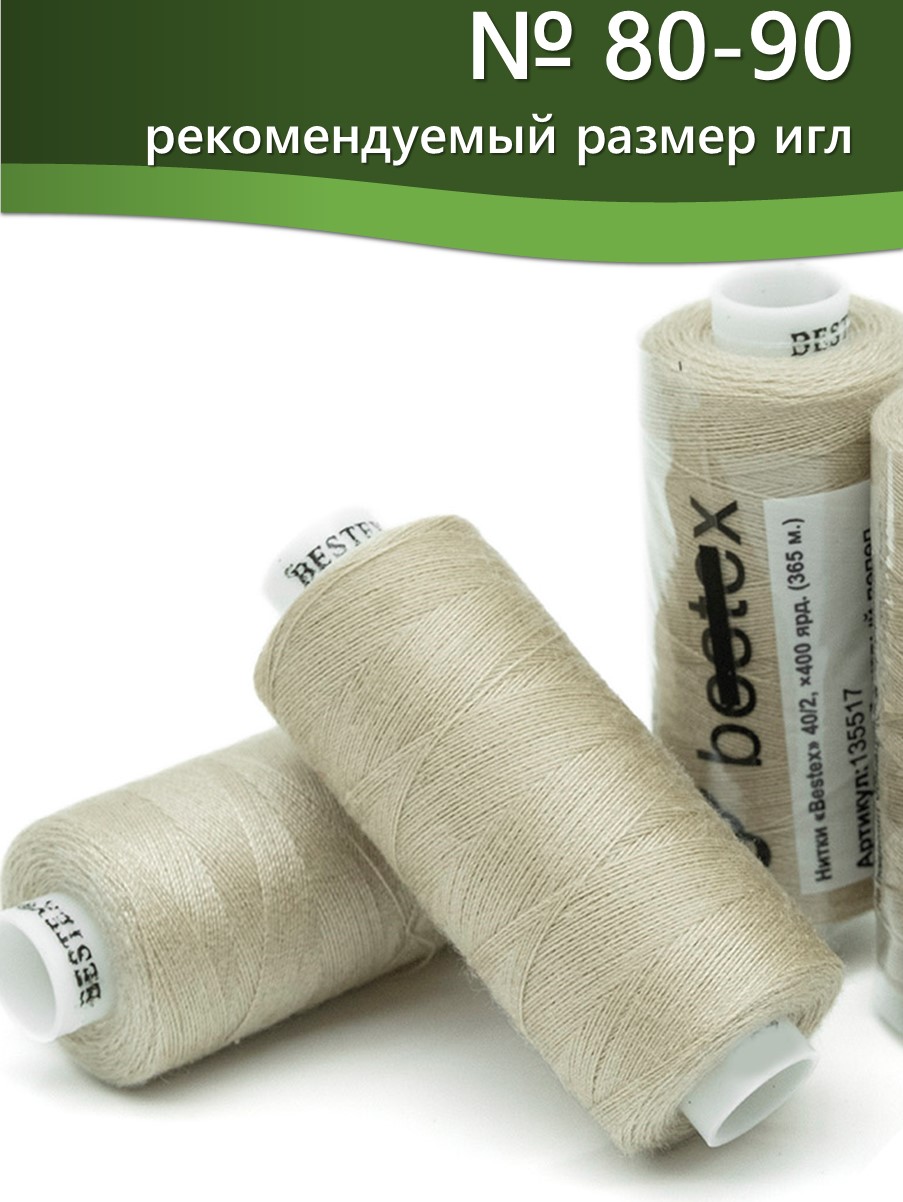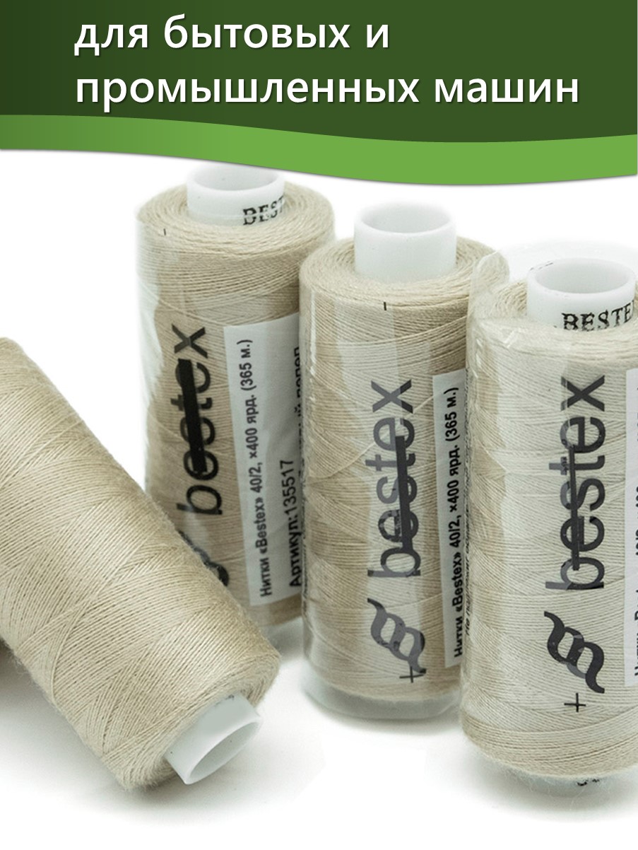 Набор ниток Bestex №40/2 – прекрасный вариант для шитья, ремонта текстильных изделий, рукоделия. Подойдут для бытовых и промышленных швейных машин. Изготовлены из 100 % полиэстера, прочные на разрыв и слегка эластичные, равномерные по толщине, имеют правостороннюю крутку. Обработаны силиконом на 3%, поэтому меньше разрываются при работе на высоких скоростях. Не истончаются и не теряют цвет после многократных стирок и от воздействия ультрафиолетовых лучей. Усадка минимальна, ворс и узелки почти не выражены. Нитки №40/2 подходят для работы с легкими тканями и тканями среднего веса. Назначение: – ремонт текстильных изделий, штопка вещей из трикотажа; – обработка срезов; – шитье вручную и на швейной машине. Линейная плотность: 14,8 x 2 текс. Разрывная нагрузка: 1050 сН. Рекомендуемый размер иглы: №80-90. В упаковке 5 бобин в намотке 400 ярдов.