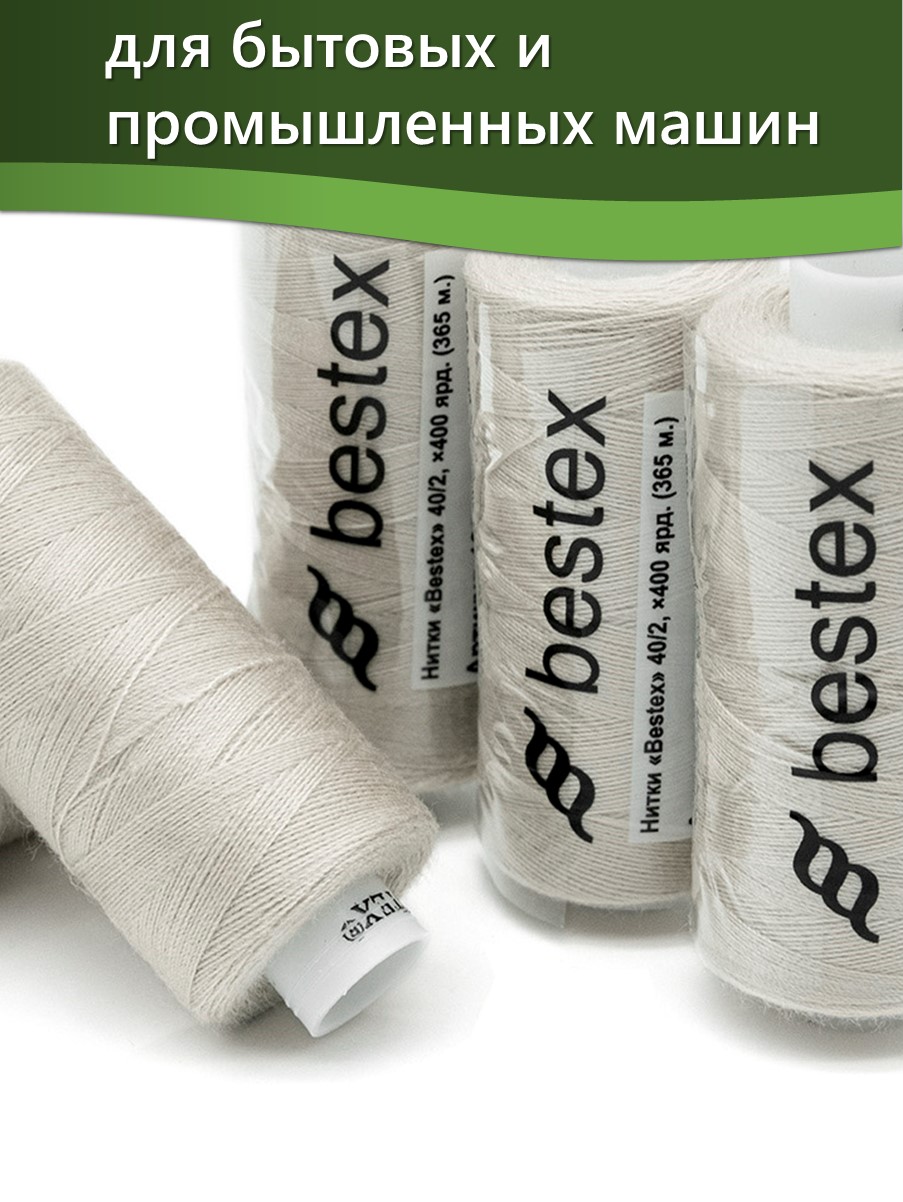 Набор ниток Bestex №40/2 – прекрасный вариант для шитья, ремонта текстильных изделий, рукоделия. Подойдут для бытовых и промышленных швейных машин. Изготовлены из 100 % полиэстера, прочные на разрыв и слегка эластичные, равномерные по толщине, имеют правостороннюю крутку. Обработаны силиконом на 3%, поэтому меньше разрываются при работе на высоких скоростях. Не истончаются и не теряют цвет после многократных стирок и от воздействия ультрафиолетовых лучей. Усадка минимальна, ворс и узелки почти не выражены. Нитки №40/2 подходят для работы с легкими тканями и тканями среднего веса. Назначение: – ремонт текстильных изделий, штопка вещей из трикотажа; – обработка срезов; – шитье вручную и на швейной машине. Линейная плотность: 14,8 x 2 текс. Разрывная нагрузка: 1050 сН. Рекомендуемый размер иглы: №80-90. В упаковке 5 бобин в намотке 400 ярдов.