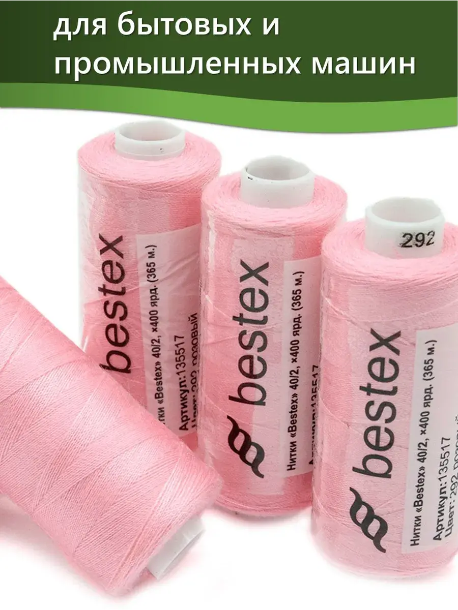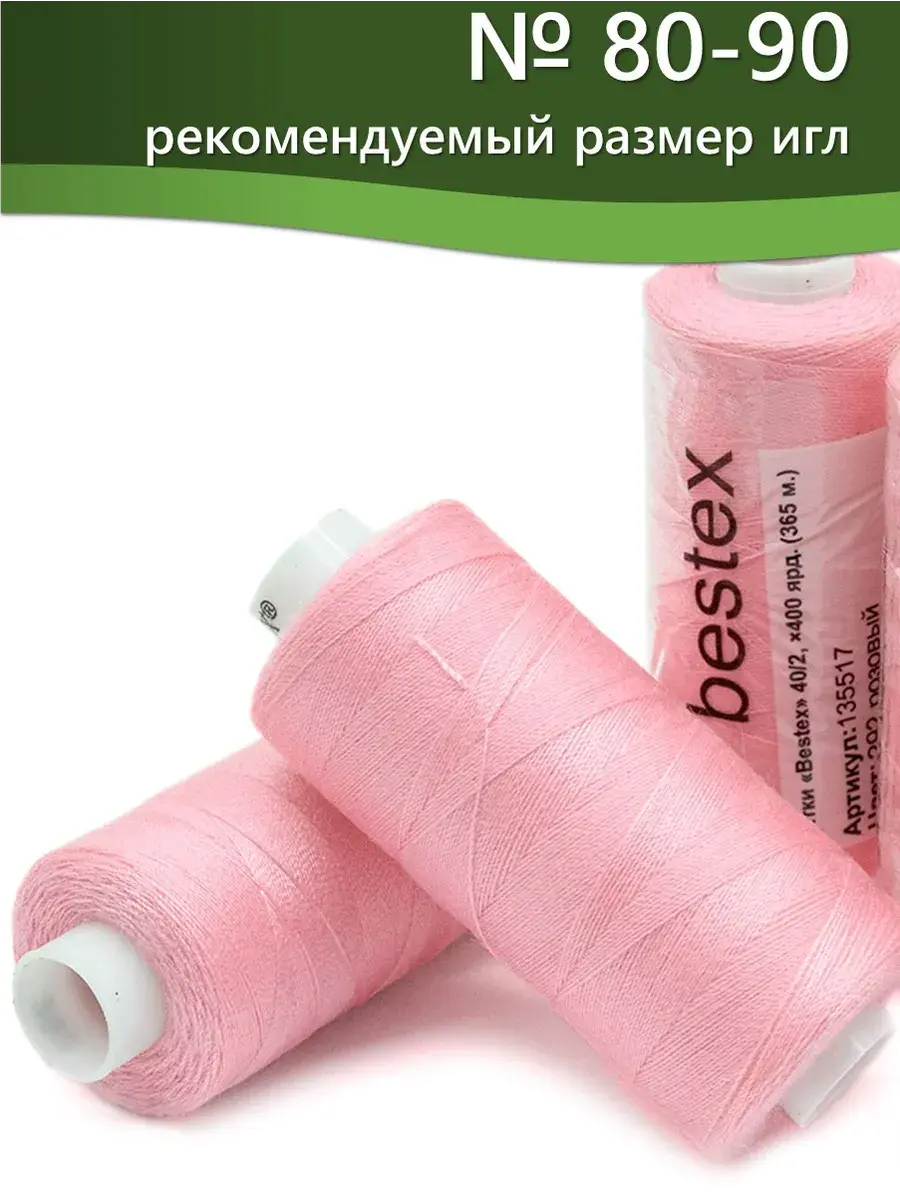 Набор ниток Bestex №40/2 – прекрасный вариант для шитья, ремонта текстильных изделий, рукоделия. Подойдут для бытовых и промышленных швейных машин. Изготовлены из 100 % полиэстера, прочные на разрыв и слегка эластичные, равномерные по толщине, имеют правостороннюю крутку. Обработаны силиконом на 3%, поэтому меньше разрываются при работе на высоких скоростях. Не истончаются и не теряют цвет после многократных стирок и от воздействия ультрафиолетовых лучей. Усадка минимальна, ворс и узелки почти не выражены. Нитки №40/2 подходят для работы с легкими тканями и тканями среднего веса. Назначение: – ремонт текстильных изделий, штопка вещей из трикотажа; – обработка срезов; – шитье вручную и на швейной машине. Линейная плотность: 14,8 x 2 текс. Разрывная нагрузка: 1050 сН. Рекомендуемый размер иглы: №80-90. В упаковке 5 бобин в намотке 400 ярдов.