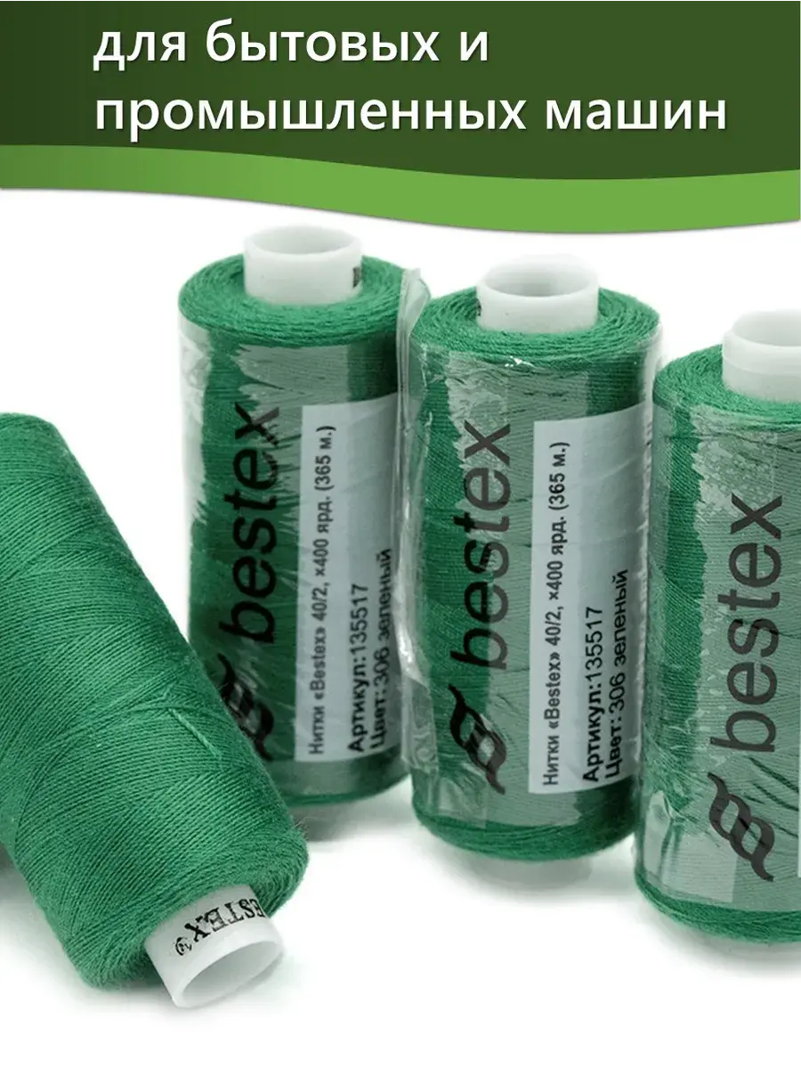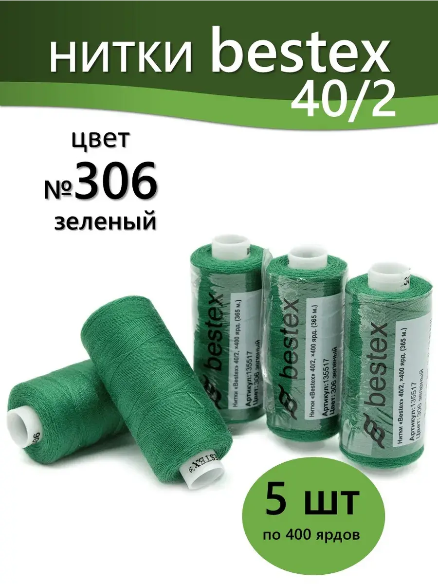 Набор ниток Bestex №40/2 – прекрасный вариант для шитья, ремонта текстильных изделий, рукоделия. Подойдут для бытовых и промышленных швейных машин. Изготовлены из 100 % полиэстера, прочные на разрыв и слегка эластичные, равномерные по толщине, имеют правостороннюю крутку. Обработаны силиконом на 3%, поэтому меньше разрываются при работе на высоких скоростях. Не истончаются и не теряют цвет после многократных стирок и от воздействия ультрафиолетовых лучей. Усадка минимальна, ворс и узелки почти не выражены. Нитки №40/2 подходят для работы с легкими тканями и тканями среднего веса. Назначение: – ремонт текстильных изделий, штопка вещей из трикотажа; – обработка срезов; – шитье вручную и на швейной машине. Линейная плотность: 14,8 x 2 текс. Разрывная нагрузка: 1050 сН. Рекомендуемый размер иглы: №80-90. В упаковке 5 бобин в намотке 400 ярдов.