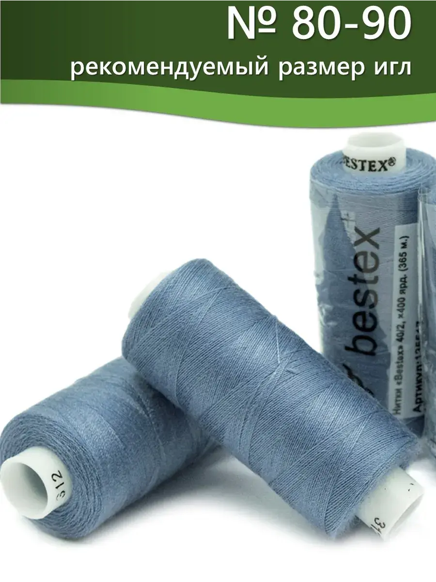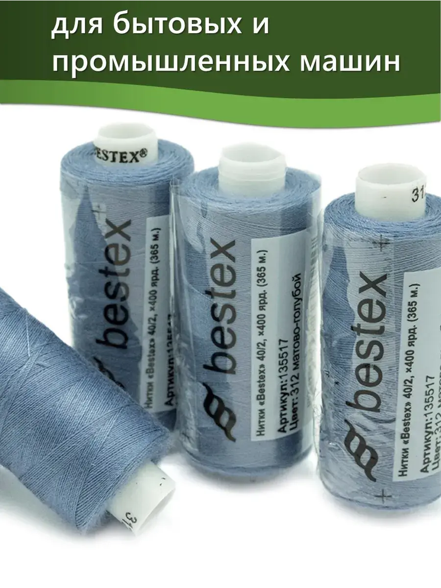 Набор ниток Bestex №40/2 – прекрасный вариант для шитья, ремонта текстильных изделий, рукоделия. Подойдут для бытовых и промышленных швейных машин. Изготовлены из 100 % полиэстера, прочные на разрыв и слегка эластичные, равномерные по толщине, имеют правостороннюю крутку. Обработаны силиконом на 3%, поэтому меньше разрываются при работе на высоких скоростях. Не истончаются и не теряют цвет после многократных стирок и от воздействия ультрафиолетовых лучей. Усадка минимальна, ворс и узелки почти не выражены. Нитки №40/2 подходят для работы с легкими тканями и тканями среднего веса. Назначение: – ремонт текстильных изделий, штопка вещей из трикотажа; – обработка срезов; – шитье вручную и на швейной машине. Линейная плотность: 14,8 x 2 текс. Разрывная нагрузка: 1050 сН. Рекомендуемый размер иглы: №80-90. В упаковке 5 бобин в намотке 400 ярдов.