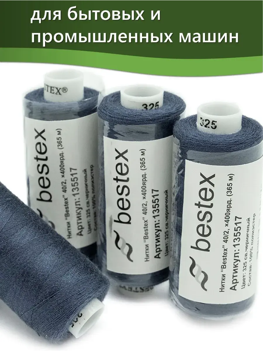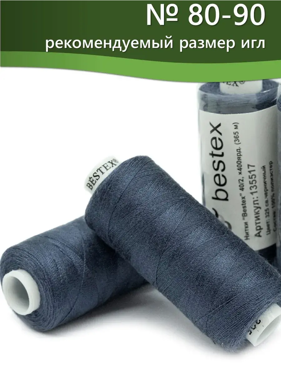 Набор ниток Bestex №40/2 – прекрасный вариант для шитья, ремонта текстильных изделий, рукоделия. Подойдут для бытовых и промышленных швейных машин. Изготовлены из 100 % полиэстера, прочные на разрыв и слегка эластичные, равномерные по толщине, имеют правостороннюю крутку. Обработаны силиконом на 3%, поэтому меньше разрываются при работе на высоких скоростях. Не истончаются и не теряют цвет после многократных стирок и от воздействия ультрафиолетовых лучей. Усадка минимальна, ворс и узелки почти не выражены. Нитки №40/2 подходят для работы с легкими тканями и тканями среднего веса. Назначение: – ремонт текстильных изделий, штопка вещей из трикотажа; – обработка срезов; – шитье вручную и на швейной машине. Линейная плотность: 14,8 x 2 текс. Разрывная нагрузка: 1050 сН. Рекомендуемый размер иглы: №80-90. В упаковке 5 бобин в намотке 400 ярдов.
