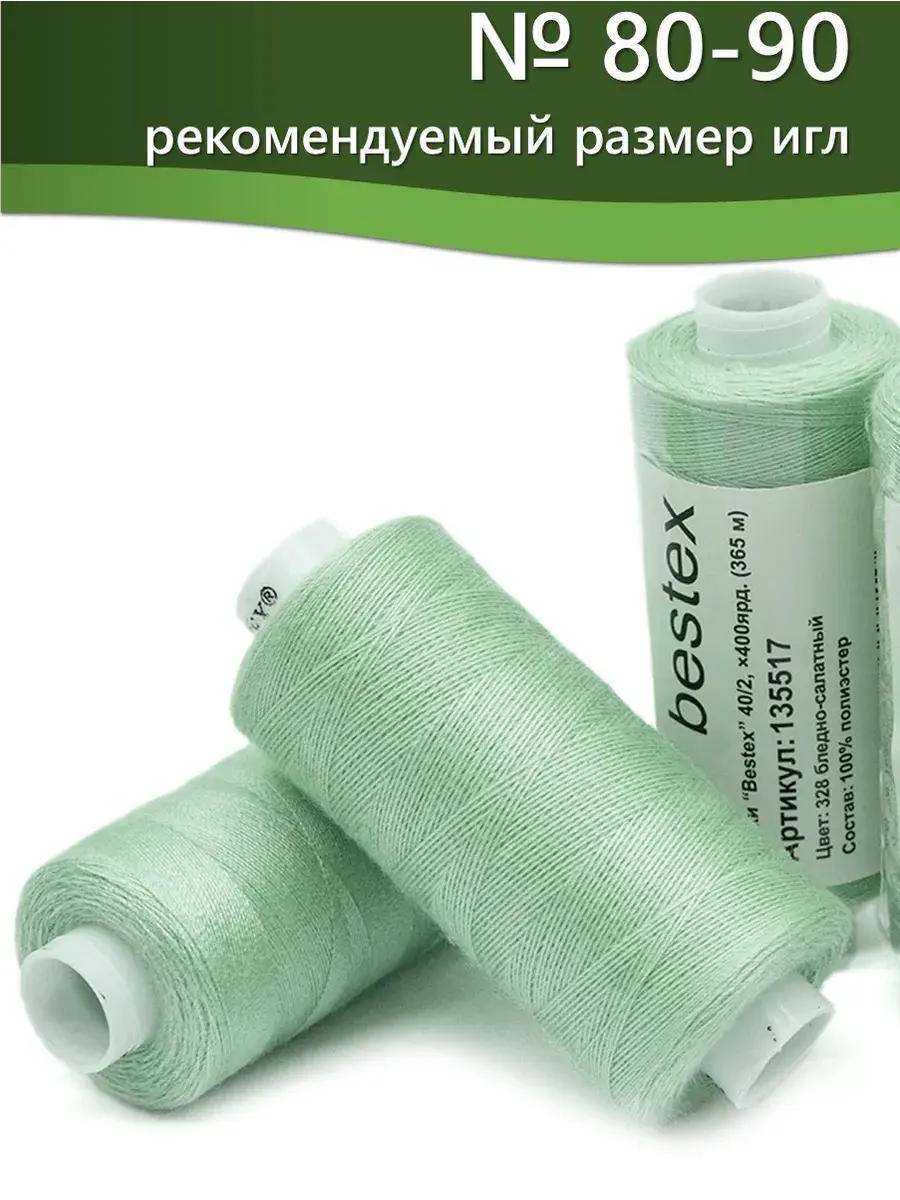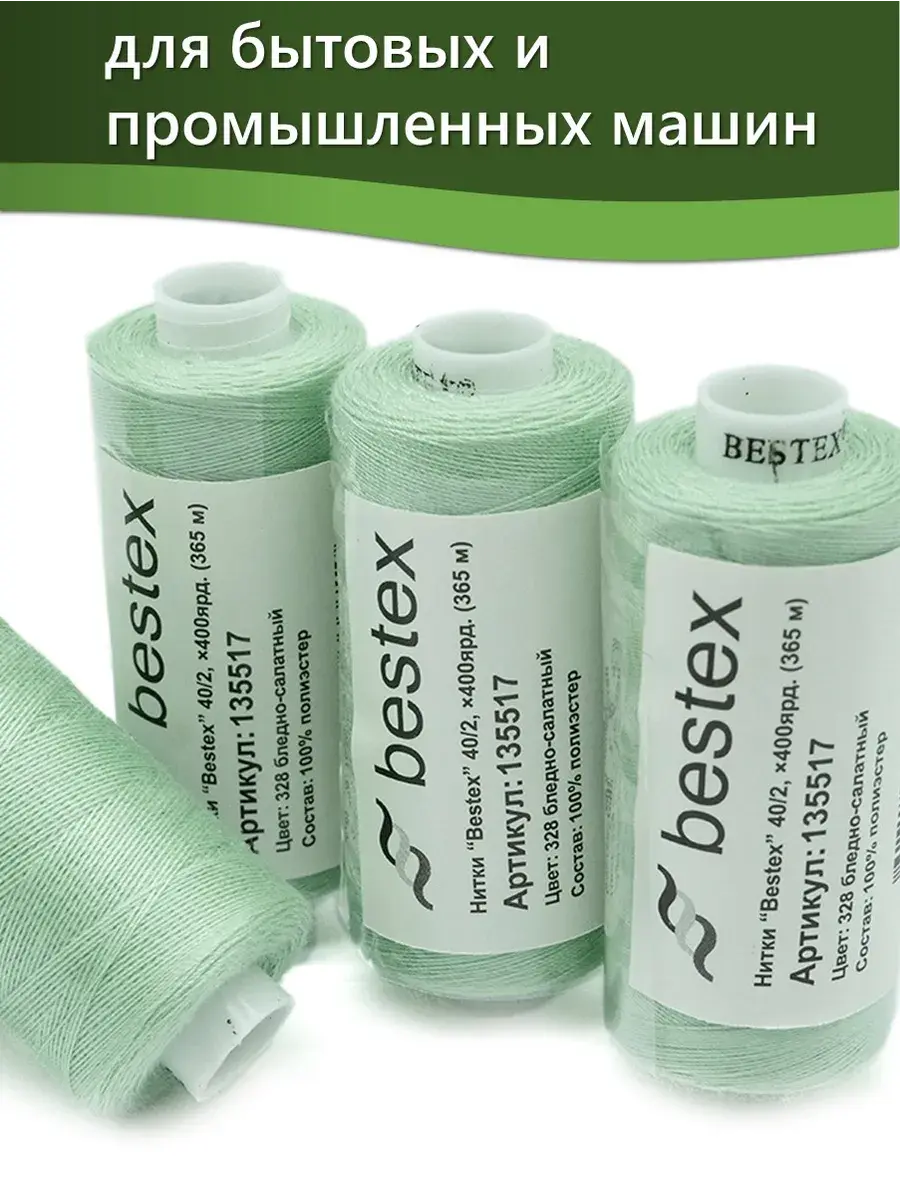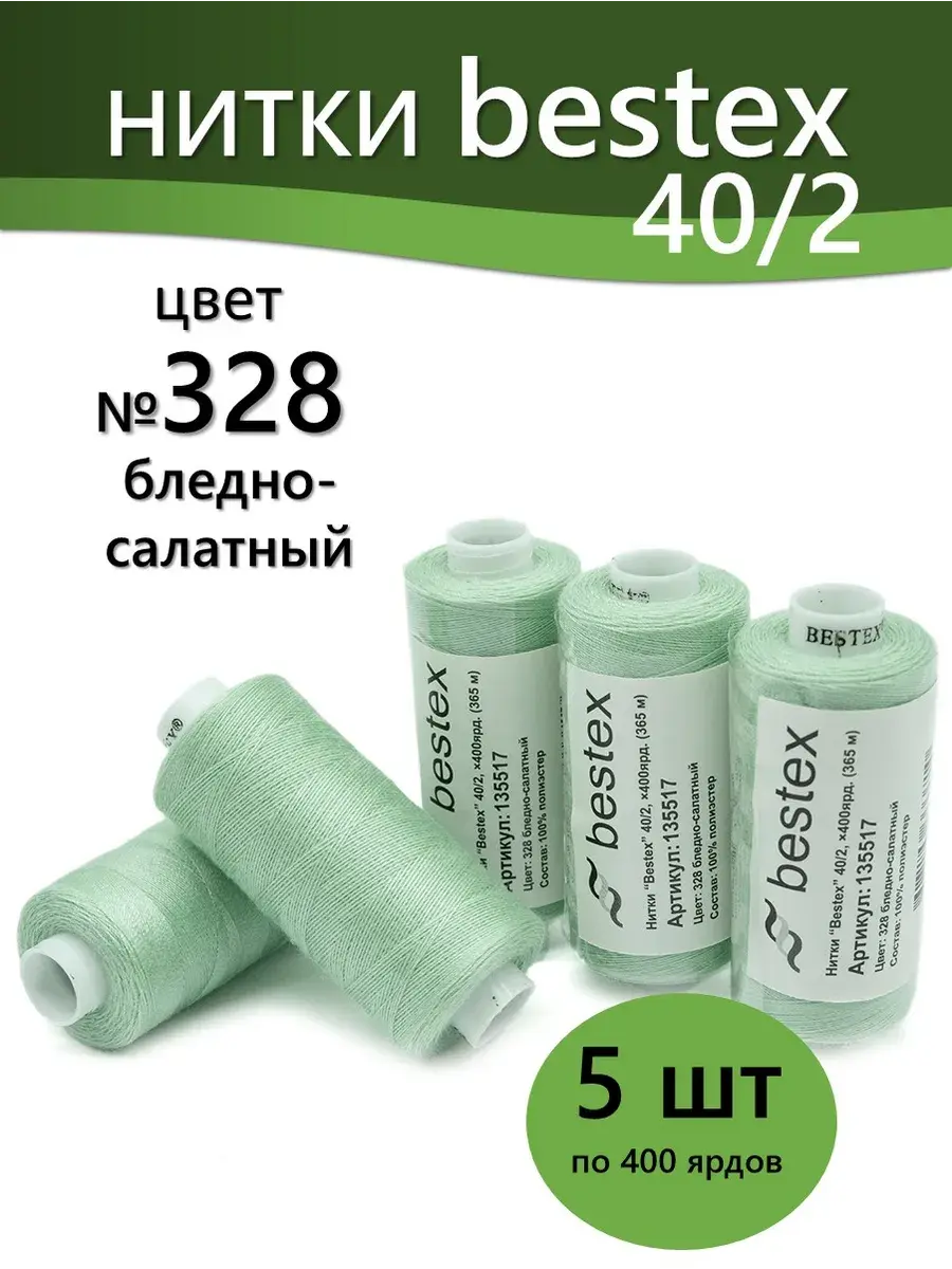 Набор ниток Bestex №40/2 – прекрасный вариант для шитья, ремонта текстильных изделий, рукоделия. Подойдут для бытовых и промышленных швейных машин. Изготовлены из 100 % полиэстера, прочные на разрыв и слегка эластичные, равномерные по толщине, имеют правостороннюю крутку. Обработаны силиконом на 3%, поэтому меньше разрываются при работе на высоких скоростях. Не истончаются и не теряют цвет после многократных стирок и от воздействия ультрафиолетовых лучей. Усадка минимальна, ворс и узелки почти не выражены. Нитки №40/2 подходят для работы с легкими тканями и тканями среднего веса. Назначение: – ремонт текстильных изделий, штопка вещей из трикотажа; – обработка срезов; – шитье вручную и на швейной машине. Линейная плотность: 14,8 x 2 текс. Разрывная нагрузка: 1050 сН. Рекомендуемый размер иглы: №80-90. В упаковке 5 бобин в намотке 400 ярдов.