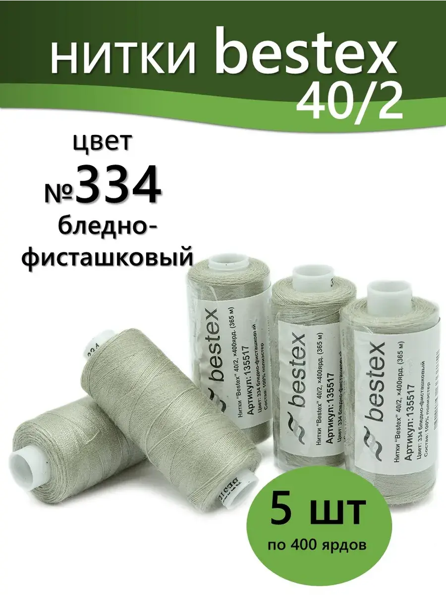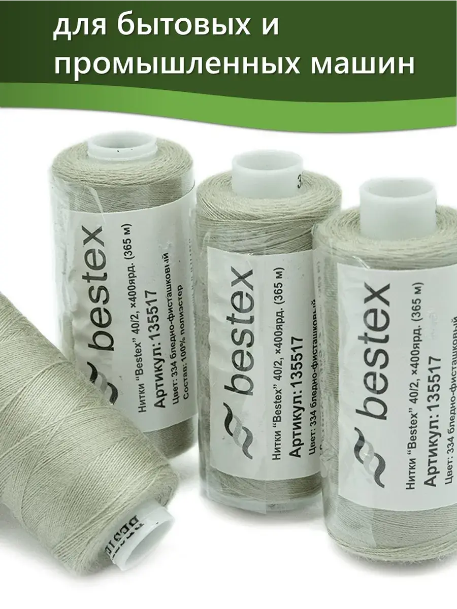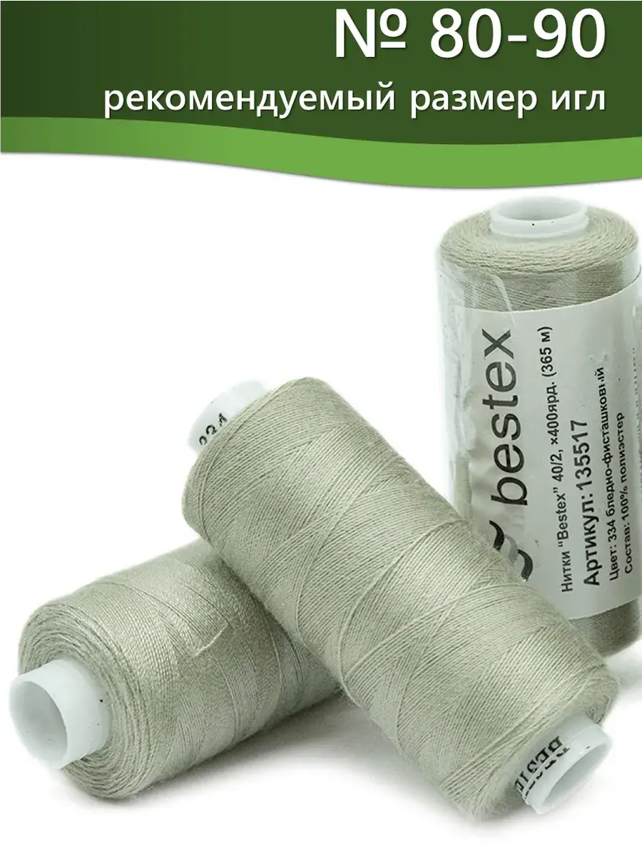 Набор ниток Bestex №40/2 – прекрасный вариант для шитья, ремонта текстильных изделий, рукоделия. Подойдут для бытовых и промышленных швейных машин. Изготовлены из 100 % полиэстера, прочные на разрыв и слегка эластичные, равномерные по толщине, имеют правостороннюю крутку. Обработаны силиконом на 3%, поэтому меньше разрываются при работе на высоких скоростях. Не истончаются и не теряют цвет после многократных стирок и от воздействия ультрафиолетовых лучей. Усадка минимальна, ворс и узелки почти не выражены. Нитки №40/2 подходят для работы с легкими тканями и тканями среднего веса. Назначение: – ремонт текстильных изделий, штопка вещей из трикотажа; – обработка срезов; – шитье вручную и на швейной машине. Линейная плотность: 14,8 x 2 текс. Разрывная нагрузка: 1050 сН. Рекомендуемый размер иглы: №80-90. В упаковке 5 бобин в намотке 400 ярдов.