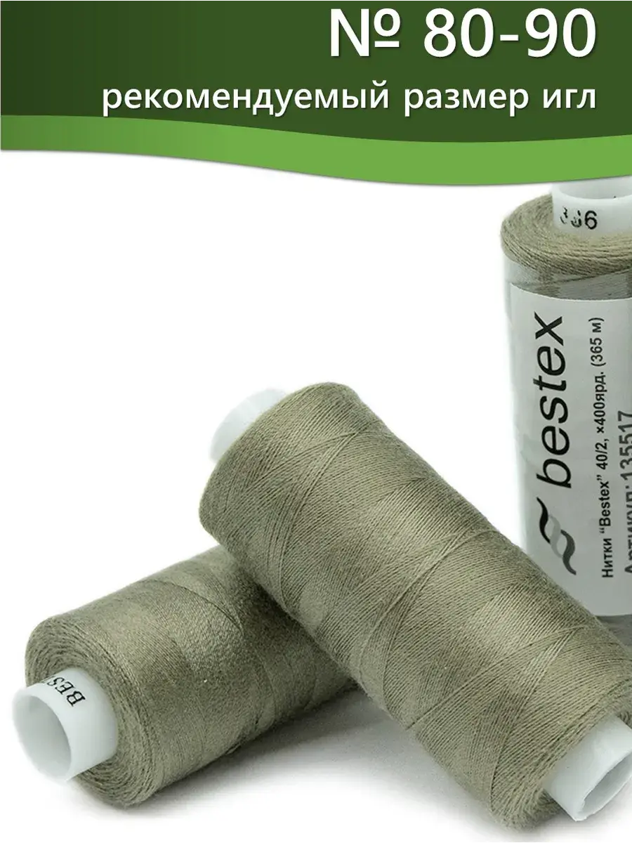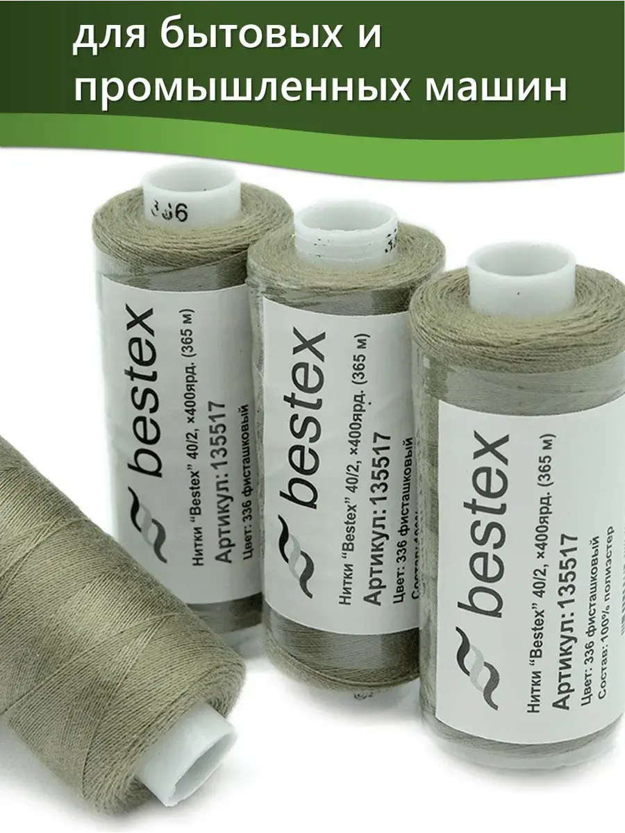 Набор ниток Bestex №40/2 – прекрасный вариант для шитья, ремонта текстильных изделий, рукоделия. Подойдут для бытовых и промышленных швейных машин. Изготовлены из 100 % полиэстера, прочные на разрыв и слегка эластичные, равномерные по толщине, имеют правостороннюю крутку. Обработаны силиконом на 3%, поэтому меньше разрываются при работе на высоких скоростях. Не истончаются и не теряют цвет после многократных стирок и от воздействия ультрафиолетовых лучей. Усадка минимальна, ворс и узелки почти не выражены. Нитки №40/2 подходят для работы с легкими тканями и тканями среднего веса. Назначение: – ремонт текстильных изделий, штопка вещей из трикотажа; – обработка срезов; – шитье вручную и на швейной машине. Линейная плотность: 14,8 x 2 текс. Разрывная нагрузка: 1050 сН. Рекомендуемый размер иглы: №80-90. В упаковке 5 бобин в намотке 400 ярдов.